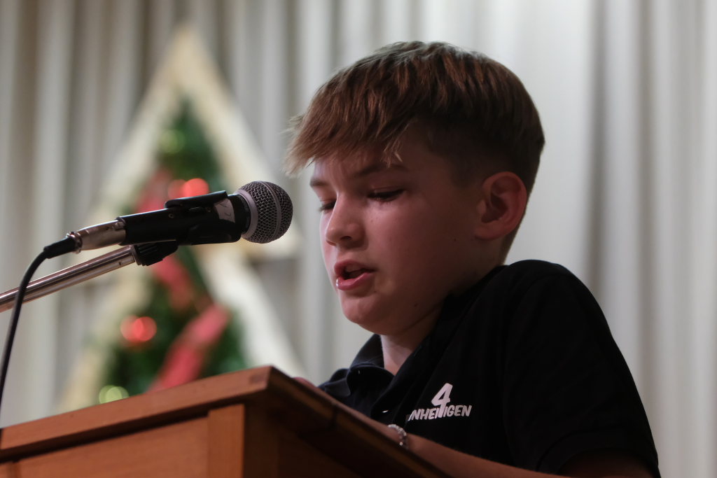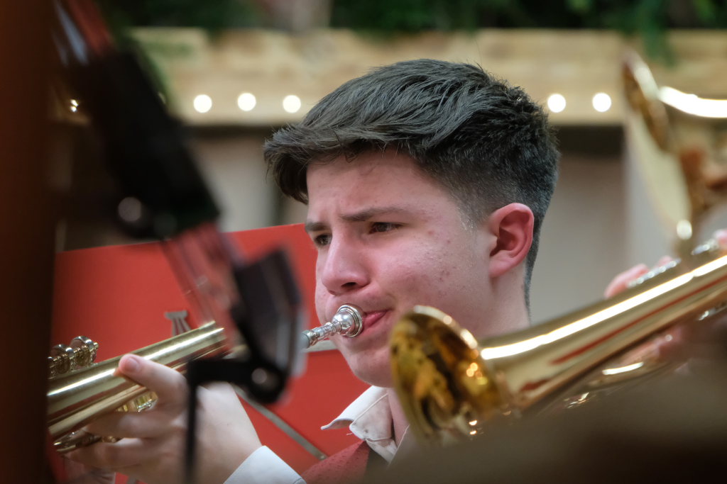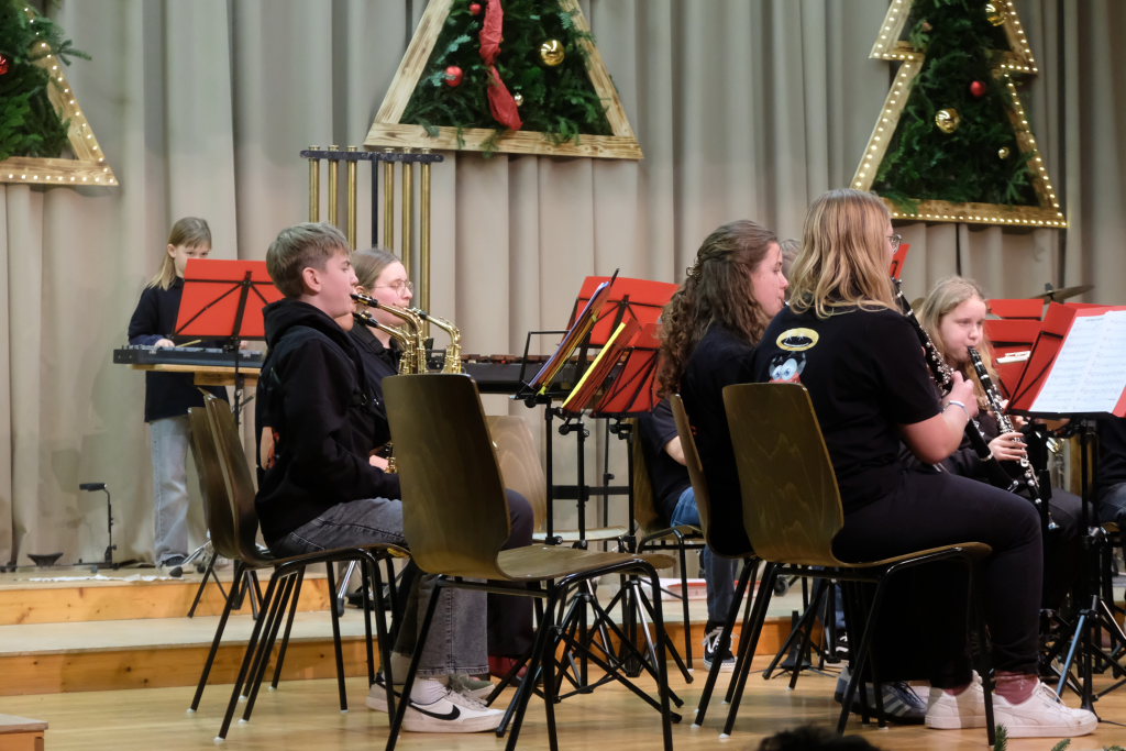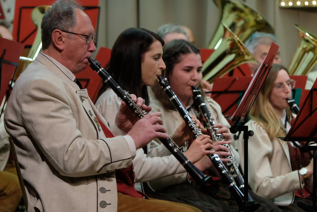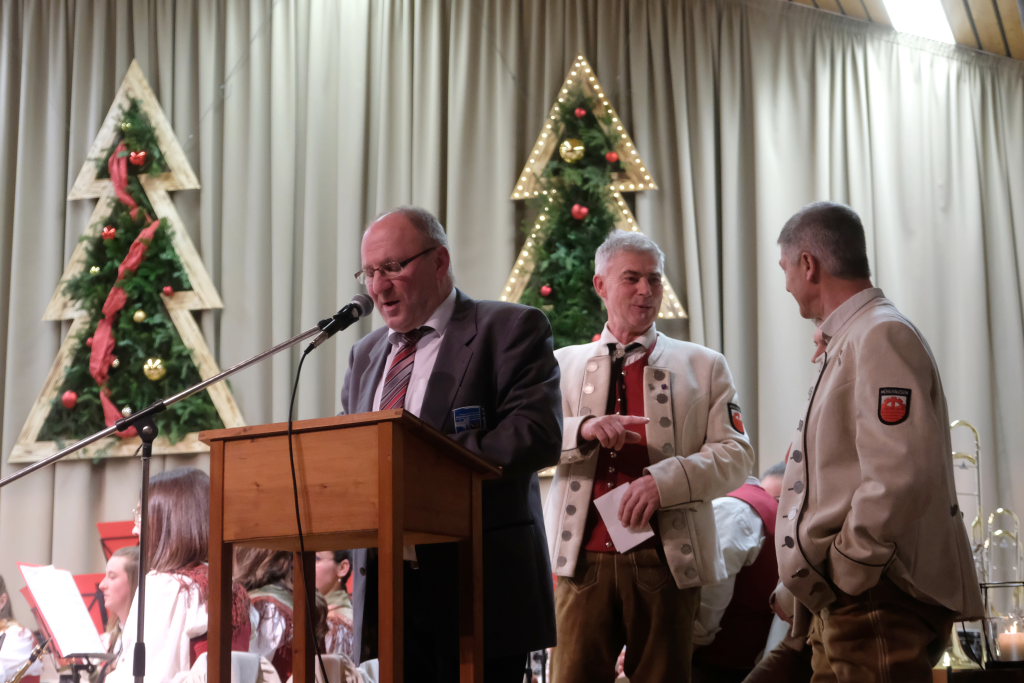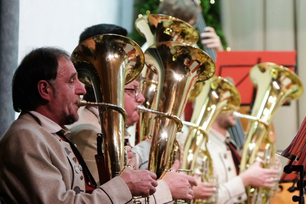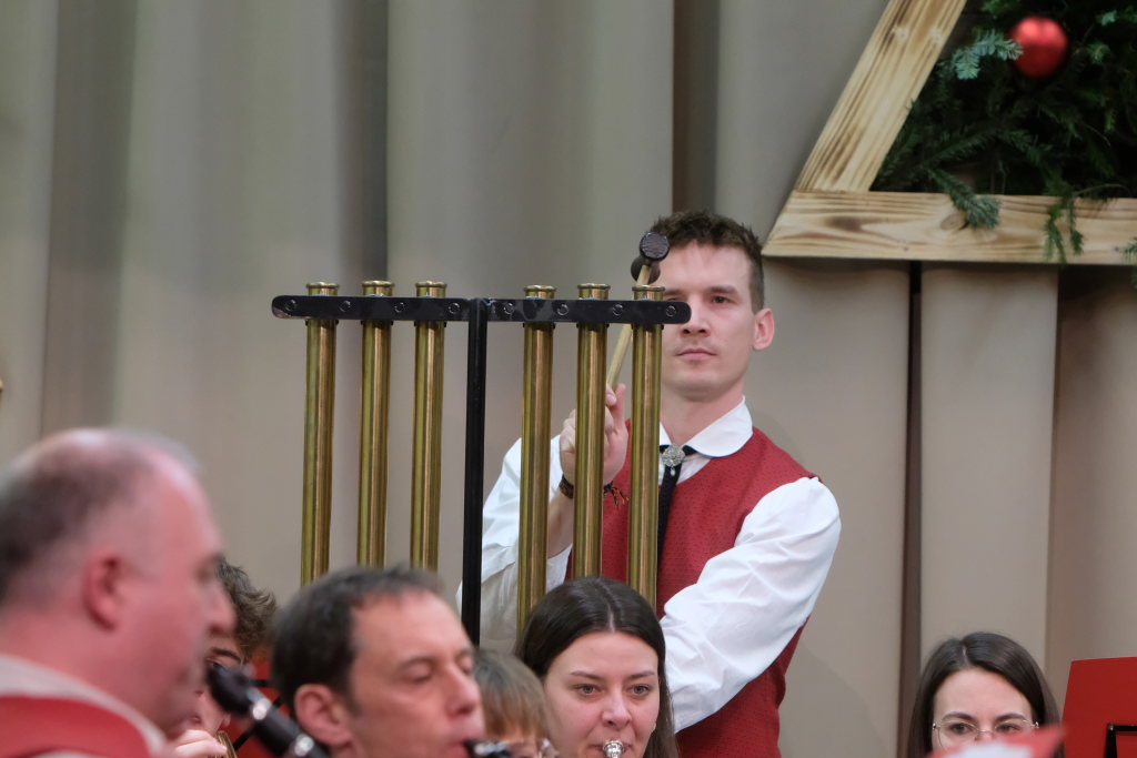 Zunächst eröffnete die Jugendkapelle Eberhardzell – Ellwangen – Füramoos – Mühlhausen den Konzertabend mit der „Fantasia di Natale“ von Luigi di Ghisallo alias Kees Vlak. Auf diesen vier traditionellen italienischen Liedern basiert die Komposition: „Canzone d’i Zampognari“, „Canto dei Pastori“, „Gesù Bambin L’e Nato“ und „Dormi, O Bel Bambin“ gemäß der Tradition, dass in Italien praktisch den ganzen Advent über viermal Weihnachten gefeiert wird. „Circle of Life“ wurde von Sir Elton John für den Zeichentrickfilm König der Löwen geschrieben. Das eher skurril anmutende Konzertstück „Bugs“ von David Shaffer besteht aus den vier Sätzen Leuchtkäferchen, Weberknecht, Schmetterling und Ameisen. Den Titel kann man also je nach persönlicher Einstellung zu den possierlichen Tierchen, die da kreuchen und fleuchen, als Ungeziefer oder Nützlinge interpretieren. Mit „Das Junge Weihnachtskonzert“ beendete die Jugendkapelle ihren Programmteil thematisch stimmig. Die Komposition von Alfred Bösendorfer ist ein speziell für Jugendorchester konzipiertes Medley aus den vier Weihnachtsliedern „Kling, Glöckchen“, „Ihr Kinderlein kommet“, „Fröhliche Weihnacht überall“ und „Morgen kommt der Weihnachtsmann“. Bei der Zusammenstellung war es dem Komponisten einerseits wichtig, vier besonders im deutschsprachigen Raum bekannte Weihnachtslieder zu verwenden. Andererseits wurden die Lieder vom Komponisten auch aufgrund ihres einheitlichen Grundtempos ausgewählt.