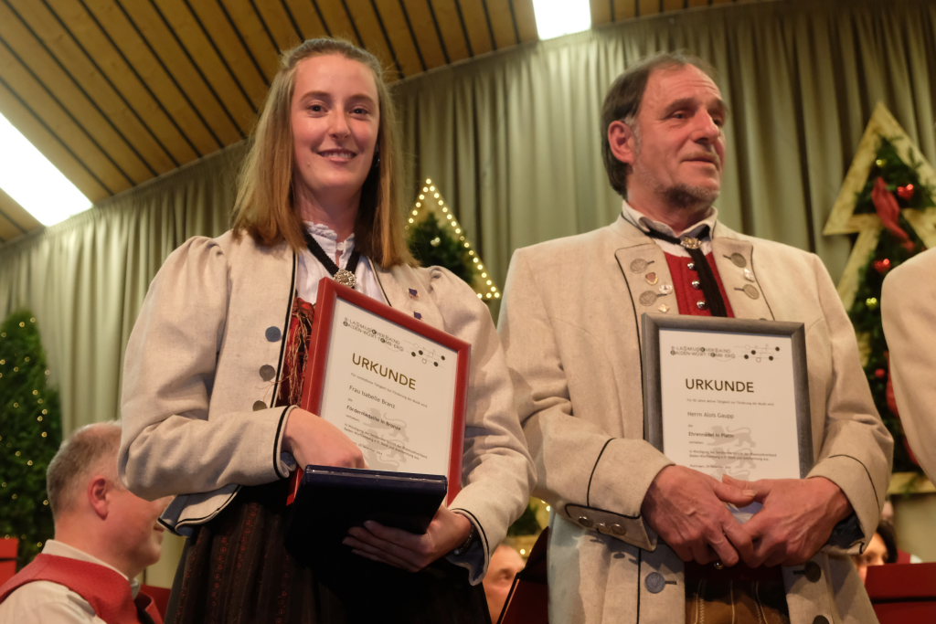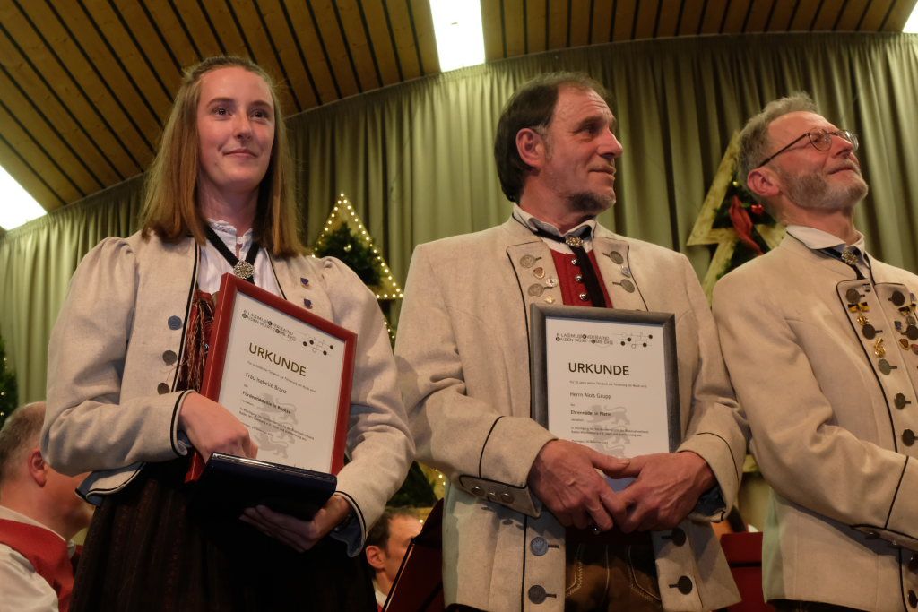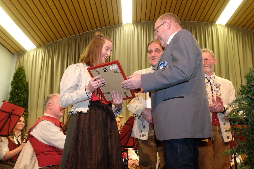 Für 10 Jahre aktive Vorstandstätigkeit wurde Isabelle Branz mit der Fördermedaille in Bronze mit Urkunde ausgezeichnet. Sie ist seit 2013 Jugendleiterin und betreute von 2014 bis 2018 die Flötenkinder. Die im Verein als Insta Isi bekannte Hornistin pflegt darüberhinaus auch Homepage und Social Media Kanäle.