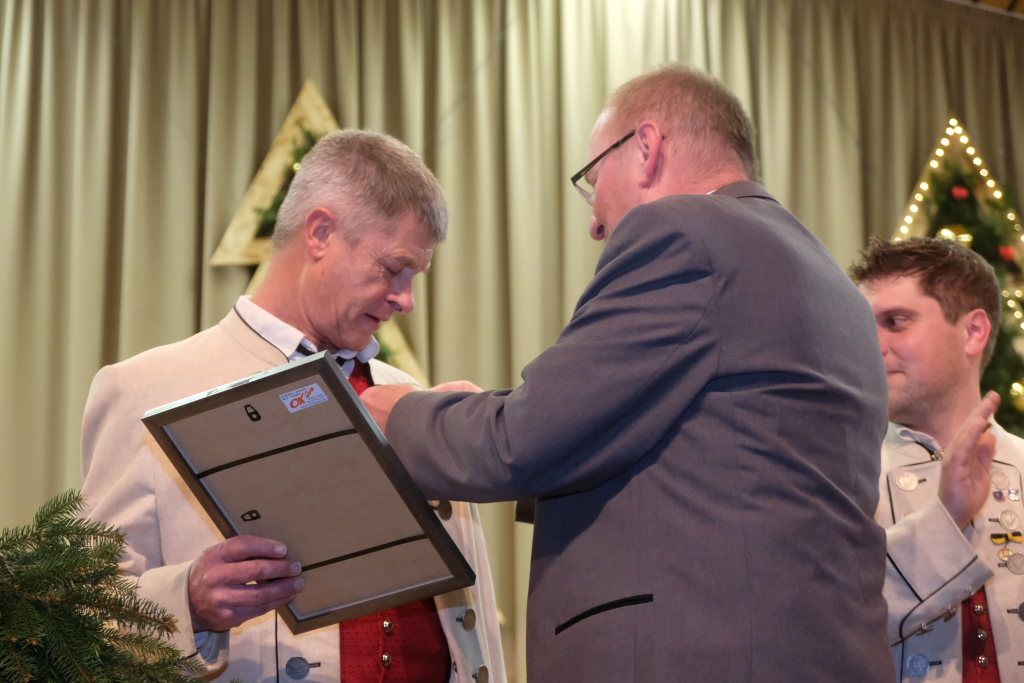 Ebenfalls für 50 Jahre aktive Tätigkeit geehrt wurde Eugen Birk. Von der Trompete, mit der er seine Ausbildung begann, ist er inzwischen zum Bariton gewechselt. Seit 1989 hatte er schon zahlreiche Ämter im Verein übernommen. Chronist, Kleiderwart, Beisitzer und Schriftführer. Seit 1991 stellvertretender Dirigent ist Eugen Birk aktuell einer der Vorstände im Vorstandsteam. Auch der im Verein hochgeschätzte Musiker erhielt die Ehrennadel in Platin mit Urkunde für 50 Jahre aktive Tätigkeit.