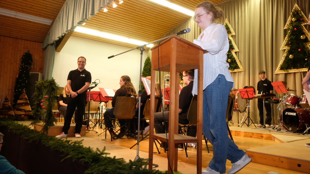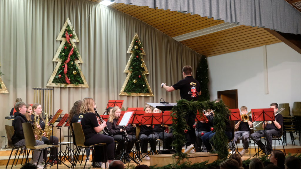Mühlhausen – Traditionell lädt der Musikverein Mühlhausen am ersten Weihnachtsfeiertag zum Weihnachtskonzert in die festlich geschmückte Turn- und Festhalle nach Mühlhausen ein. In diesem Jahr stand das Konzert unter ganz besonderen Vorzeichen: Dirigent Christian Fitz leitete zum letzten Mal die Jugendkapelle Eberhardzell – Ellwangen – Füramoos – Mühlhausen und die Konzertpremiere der Dirigentin Miriam Aviles Zulueta musste aus persönlichen Gründen ausfallen. An ihrer Stelle trat der kurzfristig eingesprungene Martin Rehmke ans Dirigentenpult.