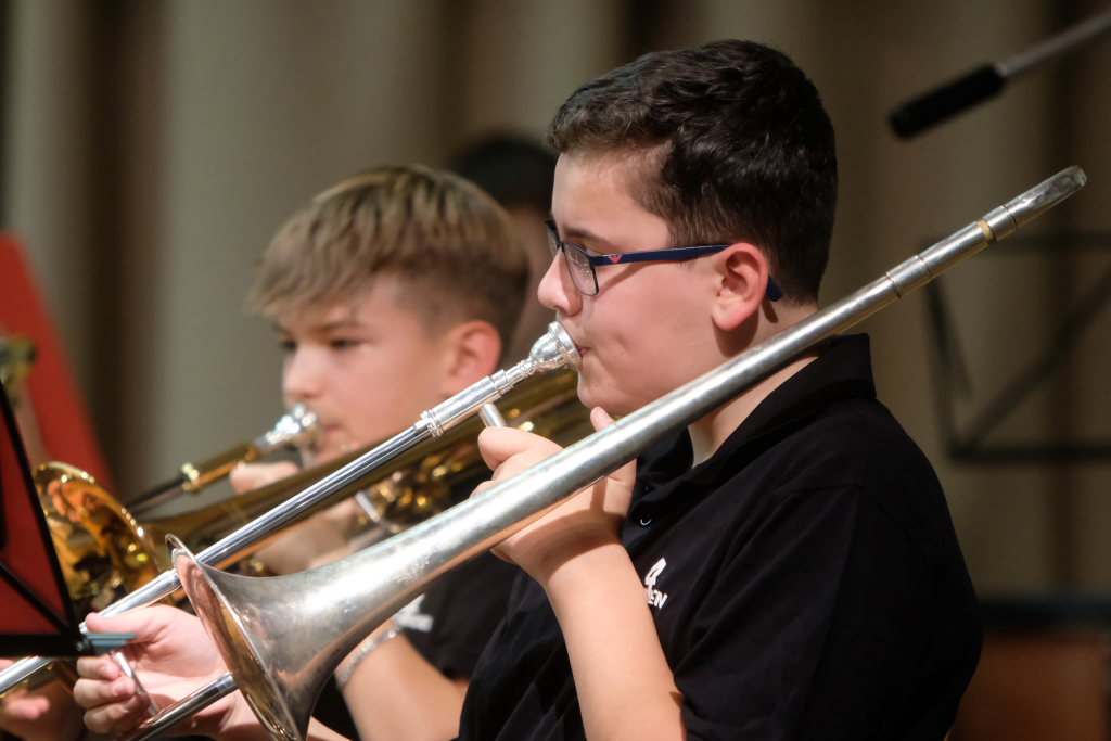Nach der vom fachkundigen Publikum geforderten Zugabe der von Kurt Gäble geschriebenen Ballade „Irish dream“ wurde es noch einmal emotional: Die jungen Musiker bedankten sich bei ihrem langjährigen Dirigenten Christian Fitz mit Worten und Geschenken für seine 12-jährigen Verdienste um die Jugendkapelle aus den vier Ortschaften, der an diesem Abend ein letztes Mal den Taktstock für sie schwang.