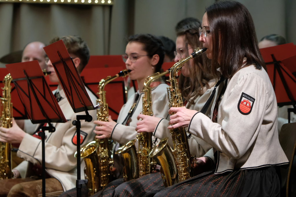 Mit dem ideal zur Eröffnung eines Konzertes geeigneten symphonischen Werk „Ceremonic Festival“ von Martin Scharnagl eröffnete der Musikverein Mühlhausen seinen Konzertteil. Choralartige Passagen wechseln sich mit Themen aus dem Bereich Filmmusik ab. Die Philosophie Martin Scharnagls, unterschiedliche stilistische und musikalische Elemente miteinander zu vermengen und zu verschmelzen, um dadurch etwas einzigartig Neues entstehen zu lassen, wird auch bei “Ceremonic Festival” auf besondere Art und Weise erkennbar. Entstanden ist so ein symphonisches Werk, das durch die unverwechselbare Handschrift des Autors einmal mehr Tradition mit Innovation verbindet. Als zweites Stück spielten die Musiker eine Komposition von Carlos Marques namens „Cassiopeia“. Die schöne Frau eines äthiopischen Königs war nicht nur sehr schön, sondern im gleichen Maße eitel, was oft großes Unglück verursachte. In dem Werk des portugiesischen Komponisten werden daher viele verschiedene Stimmungen intoniert, mal ein erhabenes Thema in getragenem Tempo, mal eines mit schnellem Tempo.
