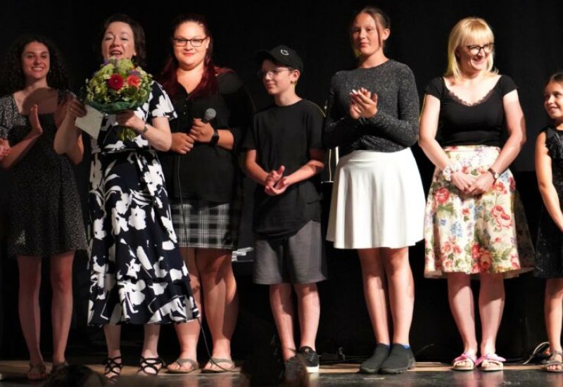 Elena Becker-Schramm mit Teilnehmern der Gesangsklasse. (Archivbild).