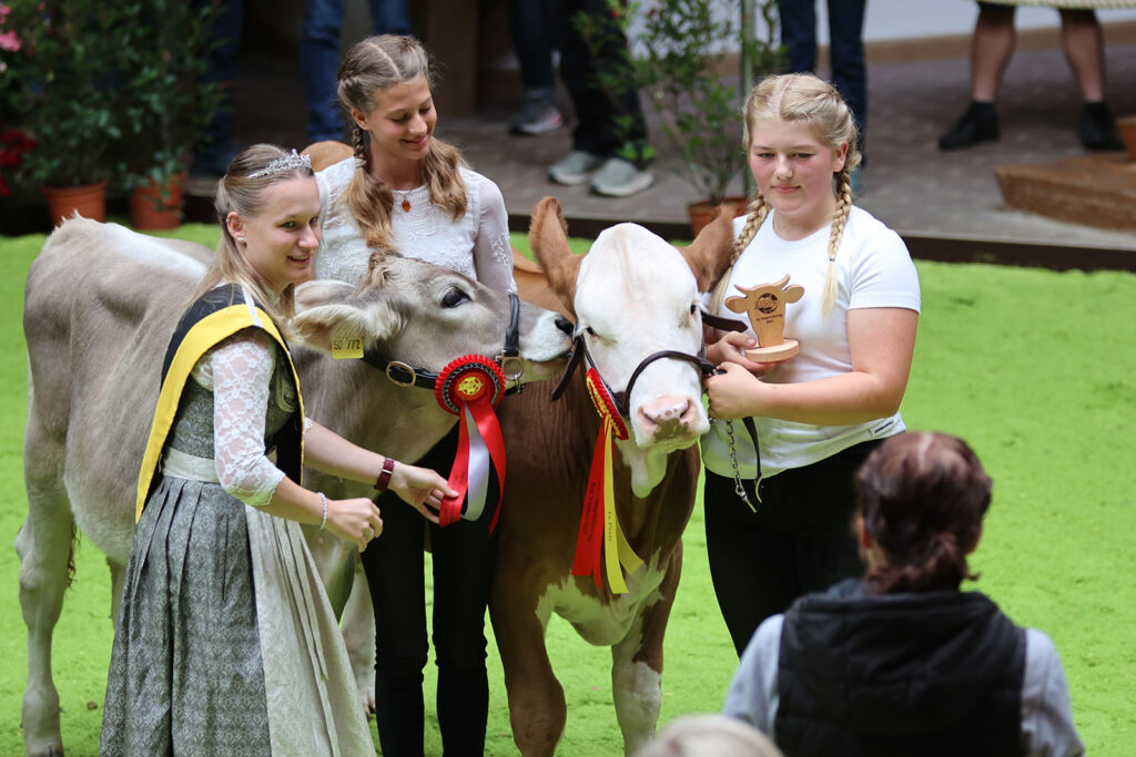 Der Schwerpunkt der Schau lag auf den Vorführfertigkeiten. Dabei zeigte sich, dass eine gute Vorbereitung entscheidend ist. Die Jungzüchter hatten ihre Tiere nicht nur bestens gepflegt, sondern präsentierten sich auch selbst in schmucker Kleidung. Es war beeindruckend zu sehen, mit welcher Ruhe und Souveränität die jungen Leute ihre Kälbchen und Jungrinder führten – ein Zeichen für die enge Bindung und das Vertrauen zwischen Mensch und Tier.