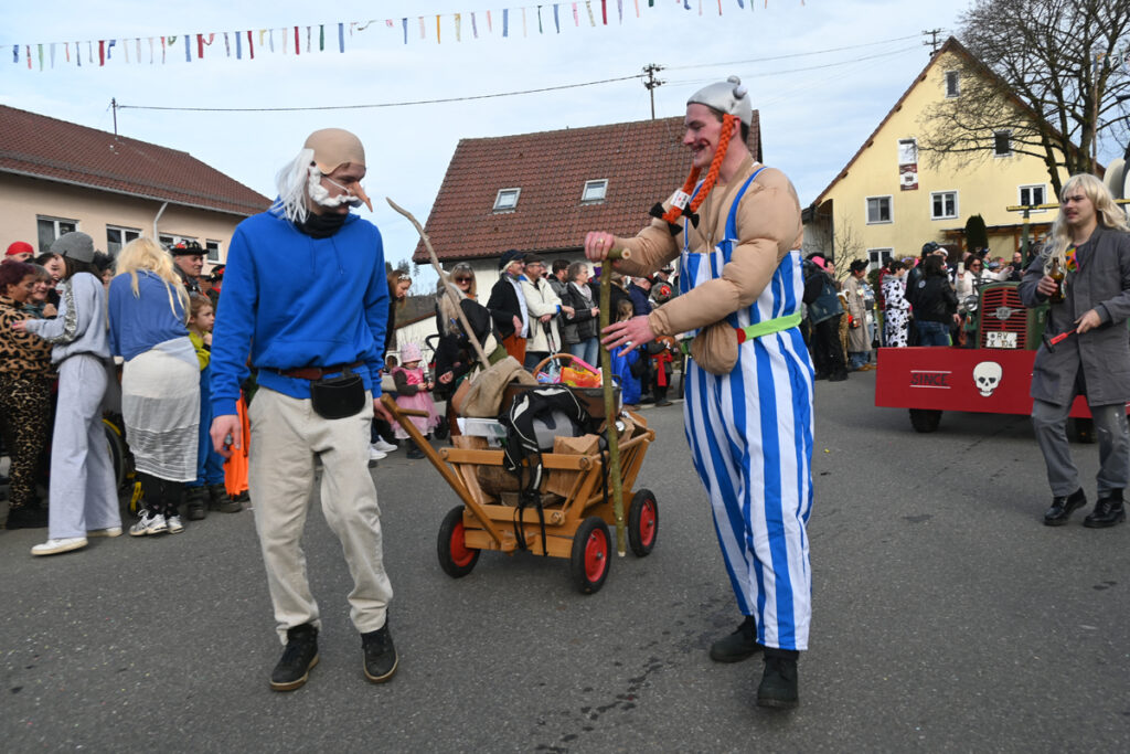 Mitttelurbach – Das Motto “60 Jahre Umzug im Königstal” hat die Königstäler wieder mal zu Höchstleistungen animiert. Was da an Phantasie und liebevoll gestalteten Verkleidungen und Masken durchs Königstal defilierte, lässt manch Große Kreisstadt vor Neid erblassen. Nur ein Wermutstropfen: Zunftmeister Gere Frick konnte nicht mitspringen. Er musste den Umzug vom Rentnerbänkle aus anschauen, weil er grade schlecht zu Fuß ist. Unser Reporter Erre Linder ist mit Fahrrad und Kamera nach Urbach hinausgestrampelt und hat einen Sack voll Bilder heimgebracht. Schaut in unsere Bilder-Galerie: