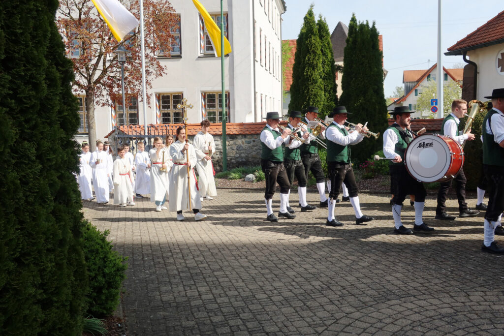 Die Kinder wurden nicht nur mit musikalischen Klängen zum Gotteshaus begleitet, sondern auch nach dem Gottesdienst ließ die große Musikantenschar wunderschöne Choräle erklingen. Dankbaren Applaus erntete die Musikkapelle für das gebotene, klangvolle Platzkonzert.