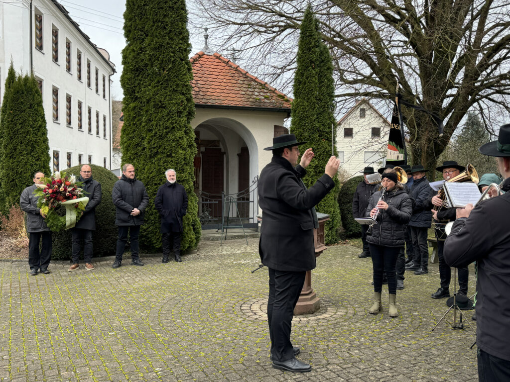 Den kirchlichen Beitrag bei der Gedenkfeier übernahm Pfarrer Ulrich Steck, der auch die Fürbittgebete um Frieden zwischen allen Menschen, Völkern und Rassen vortrug. Die Musikkapelle Haisterkirch unter Leitung von Klaus Wachter intonierte zu Beginn der Gedenkfeier Choralweisen und zum Ende das Lied „Ich hatt´ einen Kameraden“, während zwei Angehörige des Ortschaftsrats (Markus Bohner und Josef Zell) das Trauergebinde der Ortschaft vor der Kriegsopfer-Gedenkstätte niederlegten.