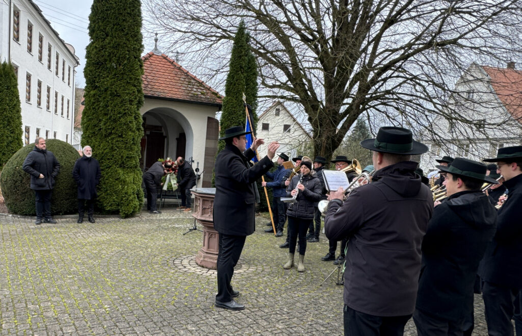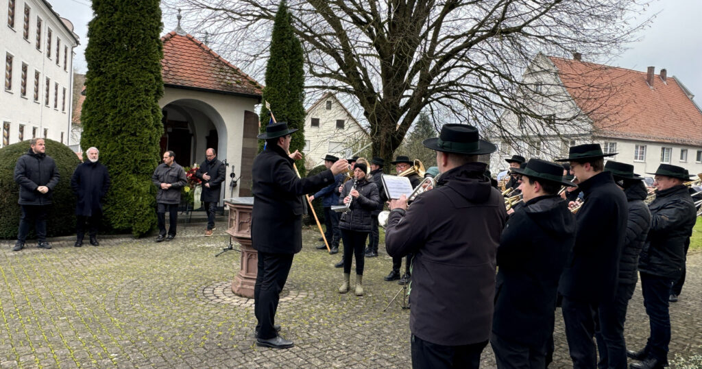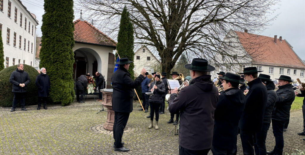Ein besonderes Dankeschön richtete Matthias Covic an Pfarrer Ulrich Steck und die Kirchengemeinde und ganz besonders an die Musikkapelle Haisterkirch. Die Musikanten und ihr Dirigent Klaus Wachter waren trotz der Anforderungen des am Abend zuvor stattgefundenen Jahreskonzerts in großer Besetzung zur Gedenkfeier gekommen.