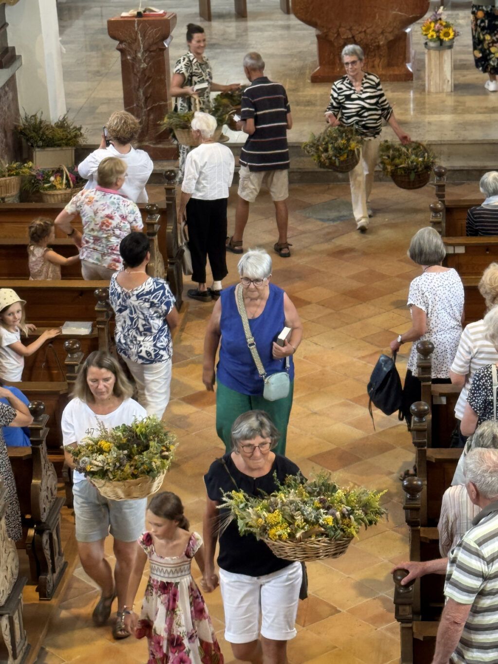 Nach dem Gottesdienst durften sich die Gottesdienstbesucher aus den Körben der Haisterkircher Frauenschar bedienen und die geweihten Mitbringsel ins eigene Heim mitnehmen. Bekanntlich sollen diese geweihten Kräuterbuschen, wie man sie in Bayern bezeichnet, den Segen Gottes auch in die Häuser bringen.