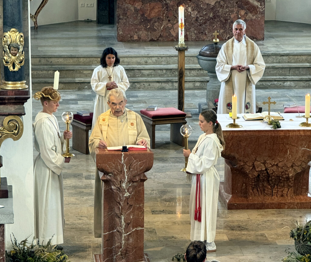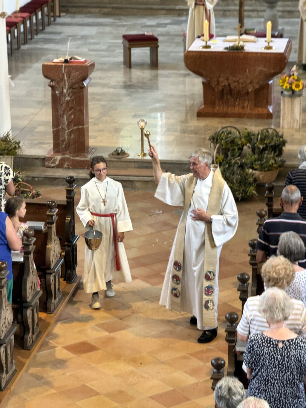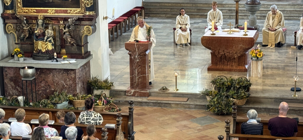 Es waren Gläubige aus der ganzen Seelsorgeeinheit Bad Waldsee und dazu eine große Schar aus der Seelsorgeeinheit Meckenbeuren. Letztere verbanden ihren Ausflug nach Bad Waldsee mit dem Besuch der hiesigen Eucharistiefeier, um diese mit ihrem langjährigen Pfarrer Josef Scherer mitfeiern zu können. Pfarrer i.R. Josef Scherer gehört seit Ende 2024 zu den Bewohnern des Wohnparks am Schloss in Bad Waldsee. Mitzelebrant war Pfarrer i. R. Josef Mattes, der seinen Lebensabend ebenfalls im Wohnpark am Schloss verbringt. In der Predigt schilderte Pfarrer i. R. Josef Scherer sehr nachhaltig, welche Rolle Maria, die Mutter Gottes, in aller Welt einnimmt. Das Hochfest geht bekanntlich auf ein Glaubensdogma zurück und drückt aus, dass Maria ihr ganzes Leben lang mit Leib und Seele für Jesus da war.