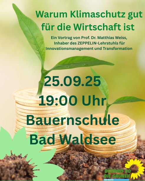 Bad Waldsee – Am Donnerstag, 25. September, um 19.00 Uhr, findet in der Bauernschule Bad Waldsee ein Vortrag zum Thema Klimaschutz mit Prof. Dr. Matthias Weiss statt. In der Einladung von Seiten des Ortsverbandes Bad Waldsee der Grünen heißt es: