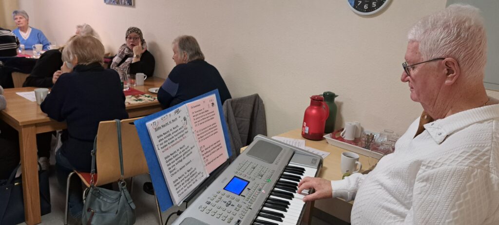 Nach reger Unterhaltung der Gäste spielte Udo Maier-Böhme auf seinem Keyboard weihnachtliches Liedgut. Professionell gestaltete Uschi Hirsch ein festliches Programm. Besinnliche aber auch heitere Worte wechselten mit dem gemeinsamen Singen von Liedern zur Weihnacht. Dazu erhielten die Gäste ein herzliches „Danke“ von Peter Niedergesäss bei der Ausgabe der gut gefüllten Weihnachtstüte. Dabei bedankten sich viele der Gäste für das freundliche Miteinander und dass immer jemand da ist, mit einem offenen Ohr für die kleinen und großen Sorgen.