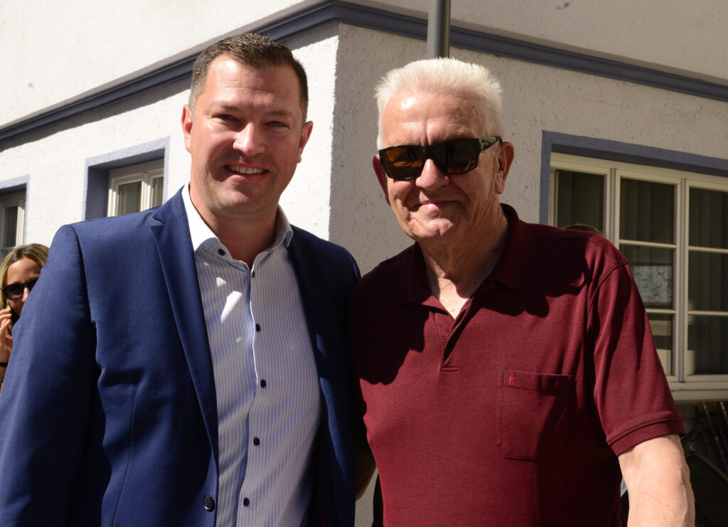 War privat in Bad Waldsee: Ministerpräsident Winfried Kretschmann. Am Rande des “Lauffiebers” traf er sich mit Oberbürgermeister Matthias Henne. Foto: Brigitte Göppel