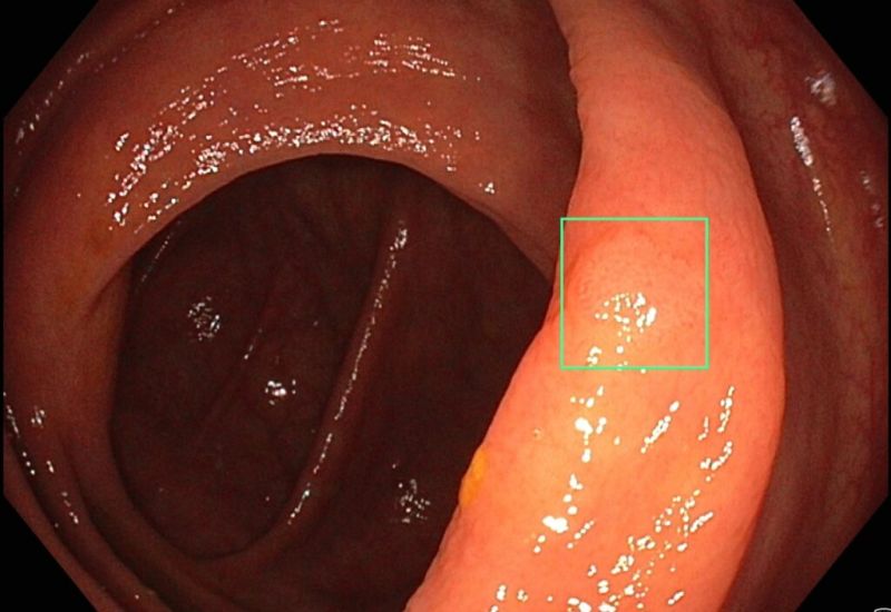 Das System steht dem Team seit einigen Wochen gemeinsam mit neuen Geräten zur Verfügung. „Bei der Koloskopie fungiert die KI wie ein zweites Paar Augen“, beschreibt Prof. Dr. Peter Klare den Vorteil. Während der Darmspiegelung hält so nicht nur der erfahrene Gastroenterologe Ausschau nach verdächtigen Strukturen, auch die KI scannt das Live-Bild, das bei der Endoskopie erzeugt wird, auf Auffälligkeiten. „Die automatische Polypendetektion sucht die Schleimhaut nach Polypen ab. Bei einem Treffer blinkt die KI und markiert die auffällige Stelle, sodass der Untersucher genau hinschauen und überprüfen kann, ob es sich um eine Schleimhautwucherung handelt.“