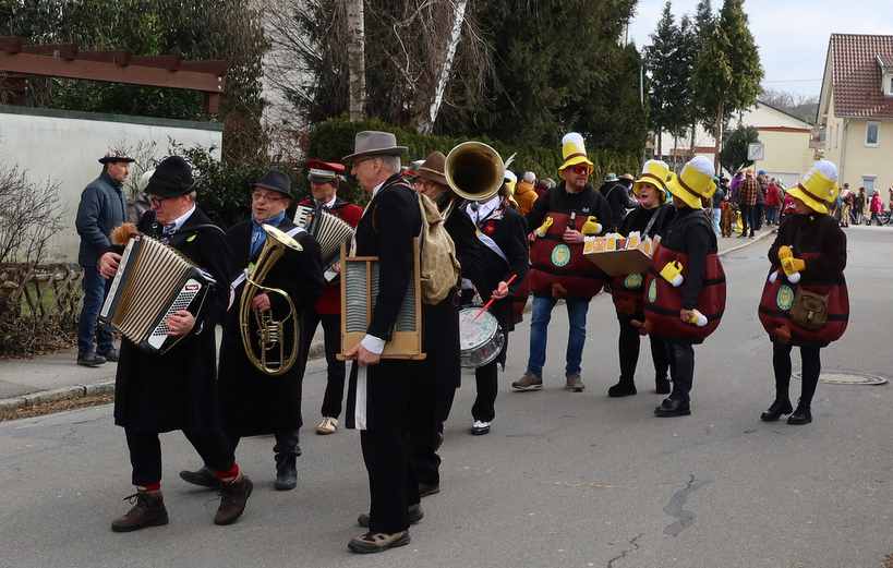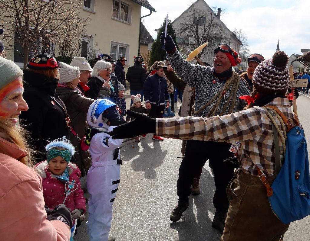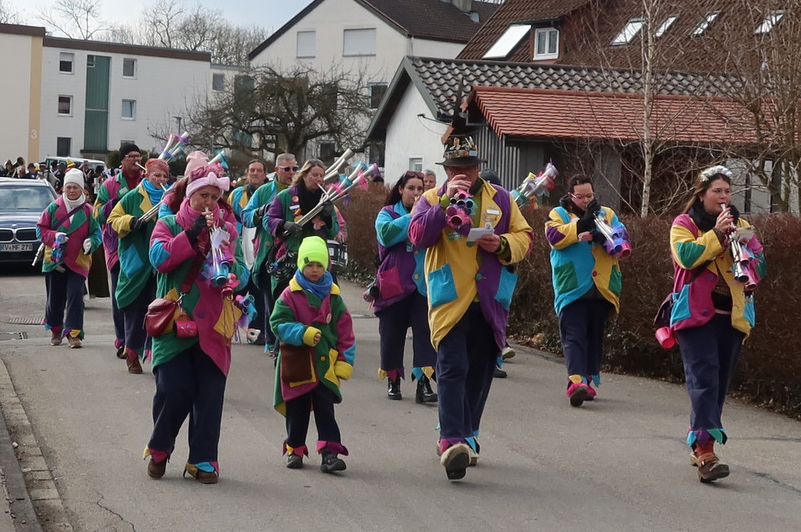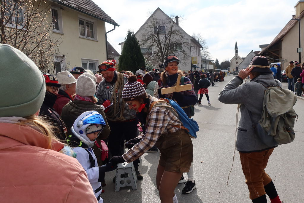 Steinach – Eine kleine feine Stadtteilfasnet feiern seit eh und je die „Achsteiner“. Trotz des kalten Windes waren am vergangenen Samstag (1.3.) viele Zuschauer zum traditionellen Umzug gekommen waren. „Es ist schon eine beachtenswerte Leistung, dass in dem Stadtteil Steinach – der bis in die 1930er-Jahre eine selbständige Gemeinde war – ein eigener Umzug mit phantasievoll kostümierten Närrinnen und Narren Jahr für Jahr auf die Beine gestellt wird“, schreibt unser Reporter Rudi Martin. „Auch hier waren die Zufahrtswege gesichert worden. Die Straßenfasnet ist vorbildlich organisiert und die Zuschauer am Straßenrand freuten sich, denn sie wurden neckisch ins närrische Geschehen miteinbezogen.“ In unserer Bildergalerie finden Sie einige Schnappschüsse von Rudi Martin, der wegen anderer Verpflichtungen nur einen Teil des Umzuges fotografisch einfangen konnte.