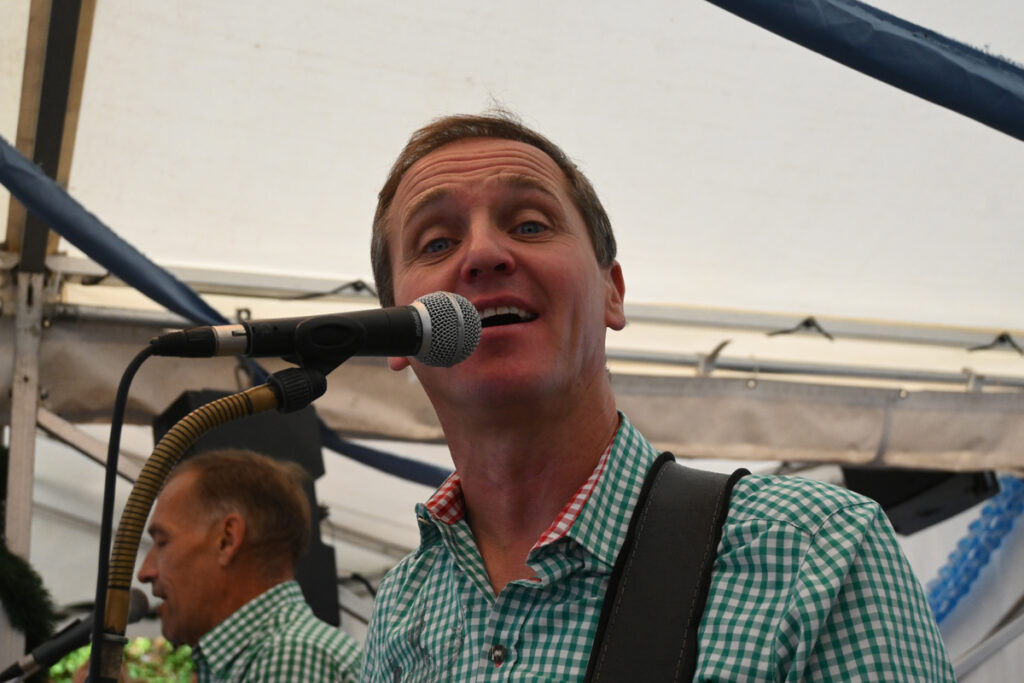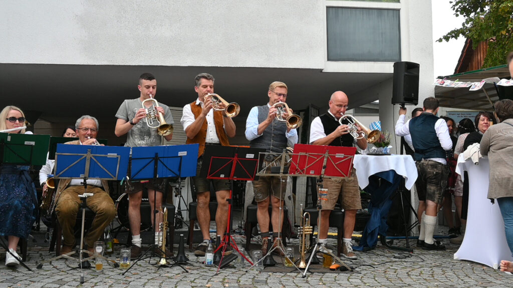 Um 16.00 Uhr übernahmen die zwei bewährten Stimmungskanonen der „Alpenstarkstrom-Band“ das Kommando. „Und jetzt die Hände zum Himmel“ führten sie die Feiernden bis zum Abend in einem Himmel bayrischer Glückseligkeit.
