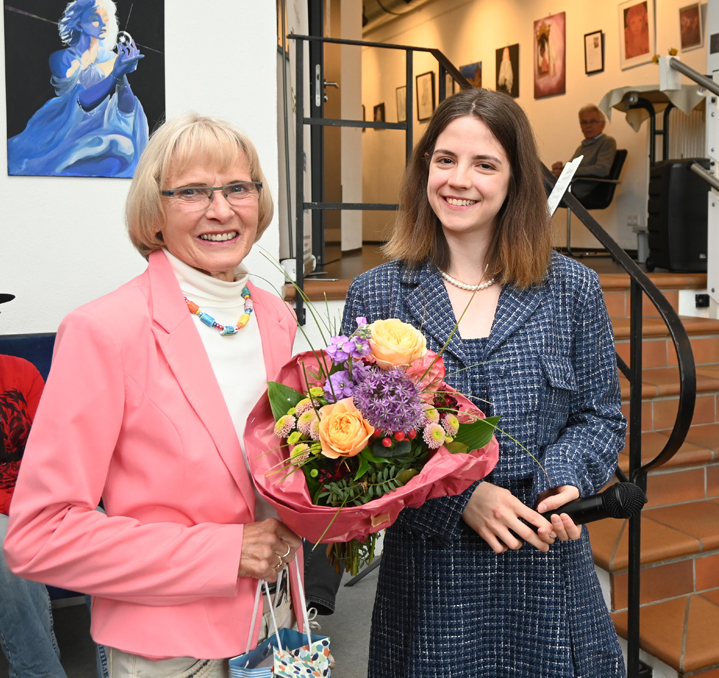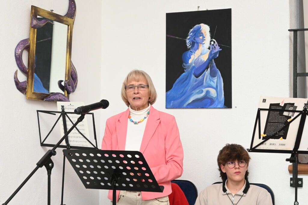 Marianne Jocham dankte den Anstoßgeberinnen Elisa Schmidt und Lisa Albrecht für die Initiative und den sechs Künstlerinnen für das Bereitstellen ihrer Werke.