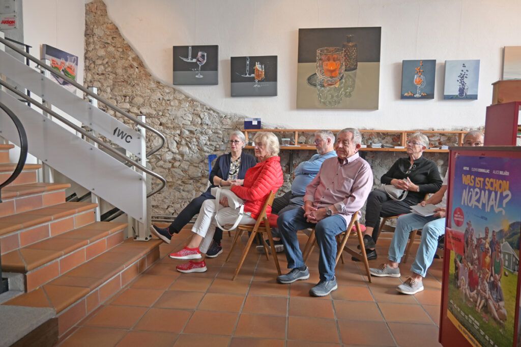 Im Dialog mit Marianne Jocham erzählte Marion Uphues-Klee von ihren ersten Malversuchen in der Kindheit. Fertig mit der Schule ließ sie sich zur Dekorateurin und Werbetechnikerin ausbilden. Lange Zeit verschaffte ihr Beruf ihr die Möglichkeiten, sich künstlerisch auszudrücken, ihr Talent für die Malerei und auch die Schriftgestaltung auszuschöpfen. Die Digitalisierung machte aber auch vor dem Beruf der Dekorateurin nicht halt. Ihre Talente waren nicht mehr gefragt. Bilder und Schriften sind am Computer schneller und billiger zusammengesetzt als von Hand gemalt.