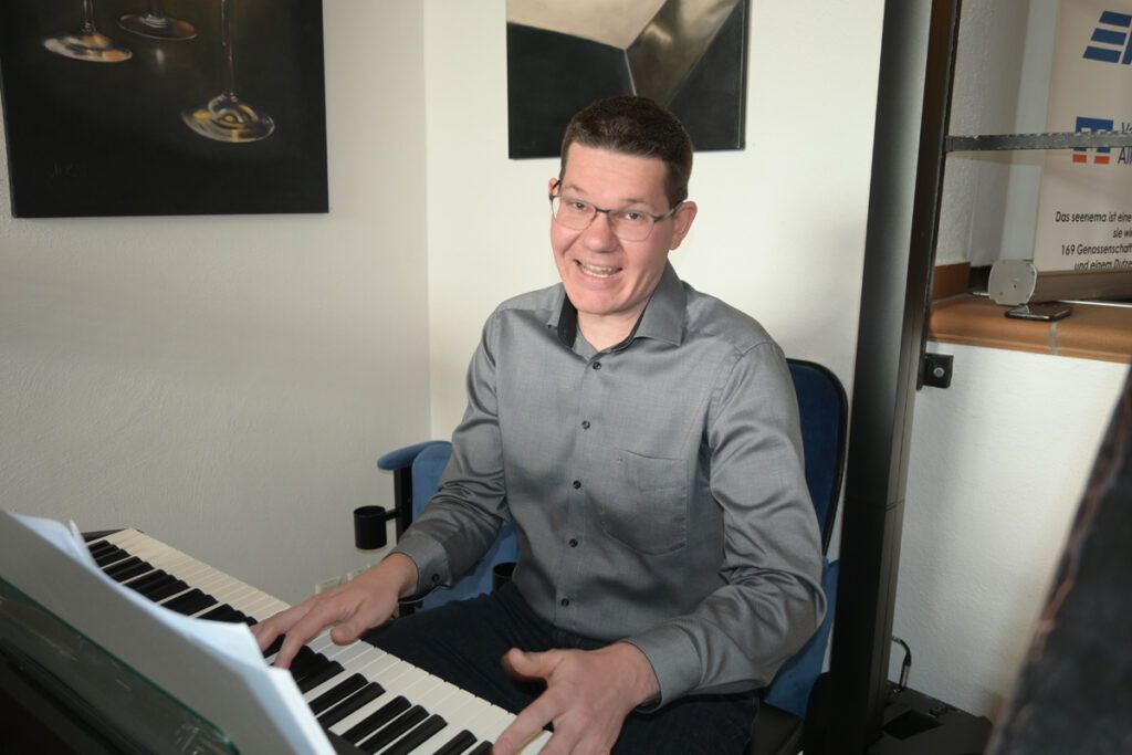 Marcel Härle begleitete die Vernissage auf seinem E-Piano mit klassischer Klaviermusik.
