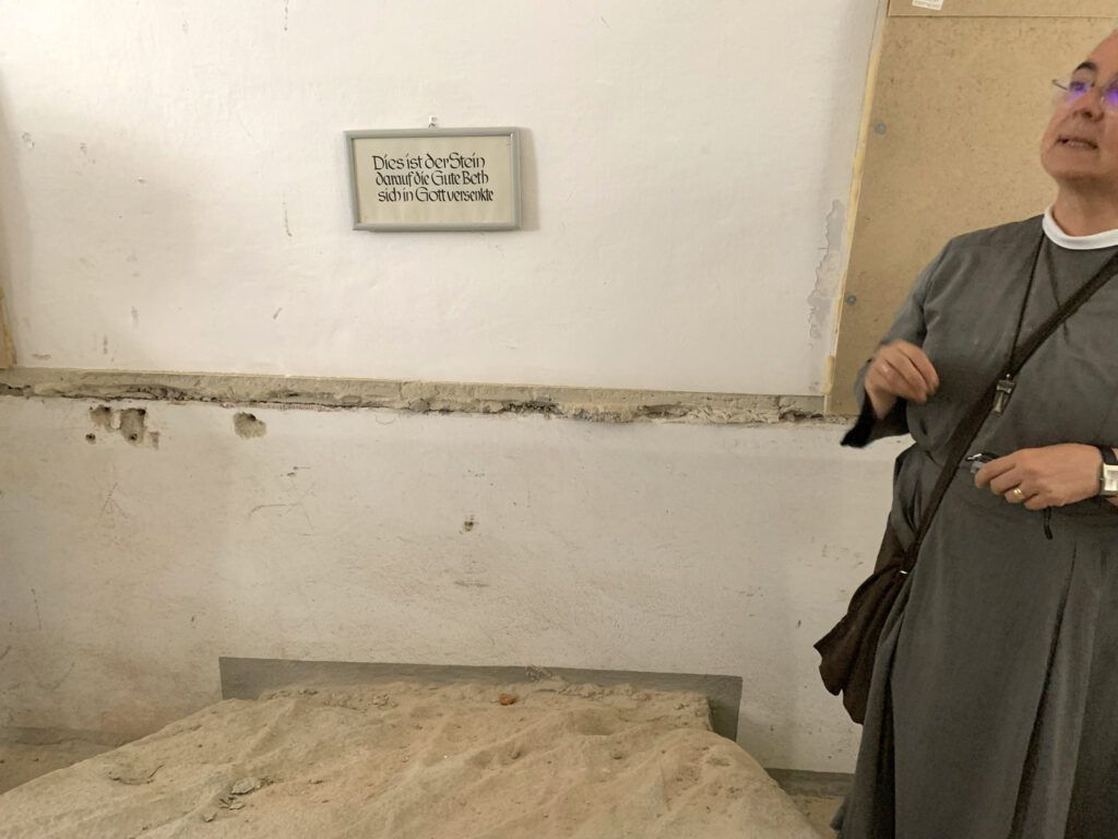 Allein neun Baustellenführungen wurden abwechselnd von Generaloberin Sr. Maria-Hanna und Claus Mellinger, Leiter der Stabsstelle Projektmanagement, angeboten. Die Besucher konnten so sämtliche Komponenten des ambitionierten und mutigen Klosterbergprojekts kennenlernen. Bekanntlich entstehen im Mutterhaus zwölf kleine Wohnungen für Menschen, die klosternahes Wohnen suchen. Von ehemals 50 Interessierten stünden noch siebzehn zur engeren Wahl, so Sr. Maria Hanna und würden weiter geprüft. Es sei beispielsweise mit Begegnungsräumen an künftige Gemeinschaften gedacht, nicht aber an betreutes Wohnen. Das Klosterbergprojekt umfasst auch die künftige Nutzung der Franziskus- und Konventskapellen. So entstünde in der Franziskuskapelle auf der erweiterten Empore ein Oratorium, das beispielsweise zu Exerzitien genutzt werden könne. In der Konventskapelle entstehe eine kleine Kapelle, ähnlich Portiuncula in Assisi, allerdings mit der sie dann umgebenden Klosterbibliothek. Die energetisch problematischen, von Sr. Ludgera gestalteten Kirchenfenster müssten leider dem Nachhaltigkeitsanspruch der Reutener Franziskanerinnen weichen. Auch der künftige verlegte Zugang zur Guth-Betha-Quelle wurde dargestellt.