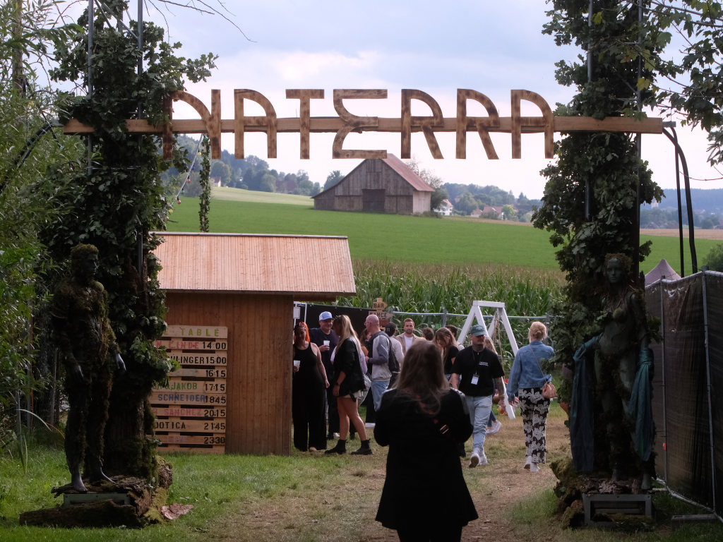 „Lasst uns gemeinsam die Lichtung am Waldrand in Bad Wurzach in ein musikalisches Naturparadies verwandeln – ein Ort voller Freiheit, Gemeinschaft und elektronischer Magie!“ gaben die Macher im Vorfeld ihre Philosophie zum Festival bekannt. Darüber wachten mehrere „Waldmenschen-Figuren“ am Eingang des eigentlichen Festival-Geländes.