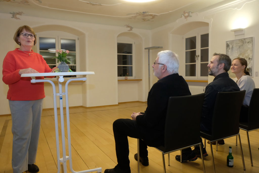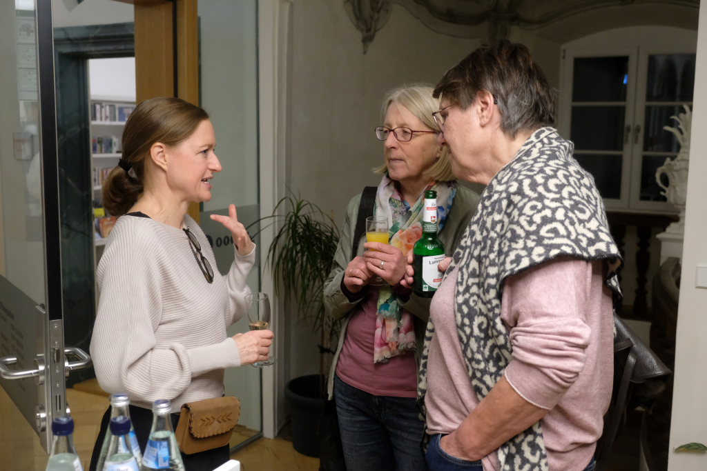 Ausstellungsleiterin Christiane Linge hieß die Besucher im Herzstück der Stadtbücherei, dem Kapitelsaal, willkommen und stellte die Künstlerin, die in Quebec geboren wurde und der Galerie in Maria Rosengarten ein wenig internationales Flair verlieh, vor. Klaus Schütt hieß Gäste und Künstlerin im Namen der Stadt in den stimmungsvollen Räumlichkeiten, in denen schon viele – zum Teil sehr unterschiedliche Künstler ausgestellt hatten – herzlich willkommen.