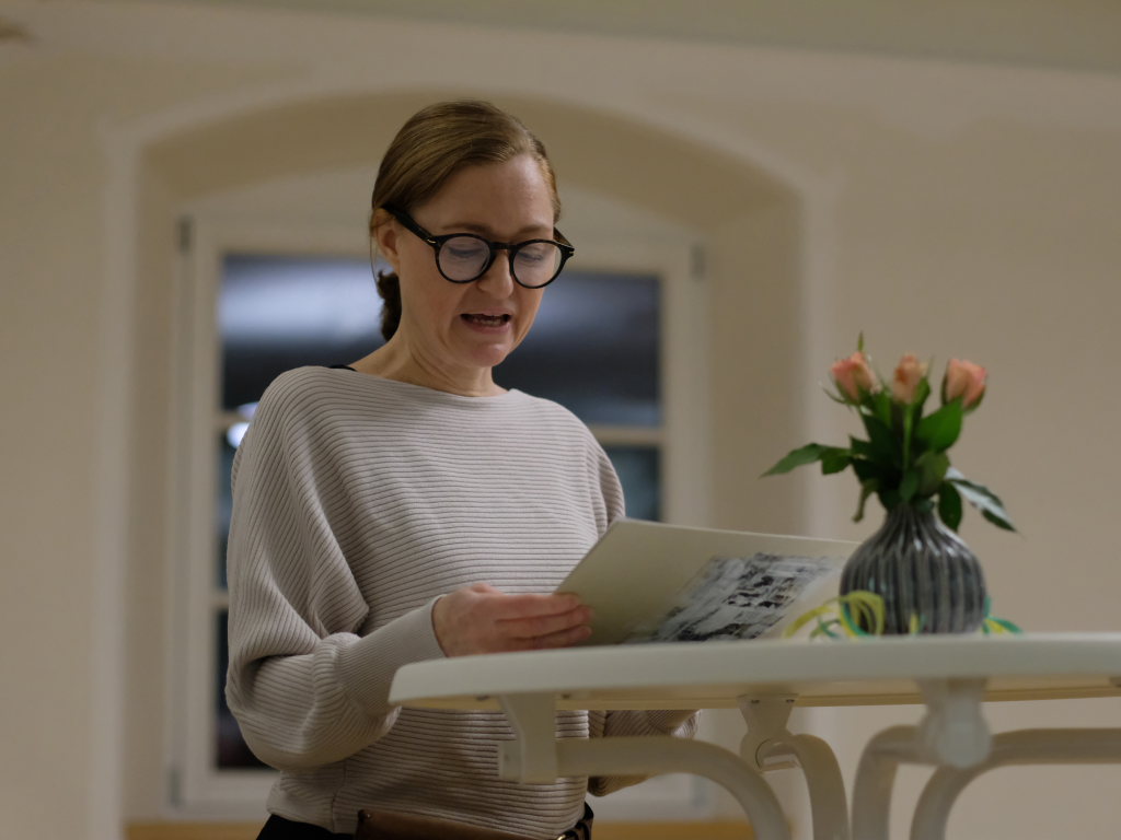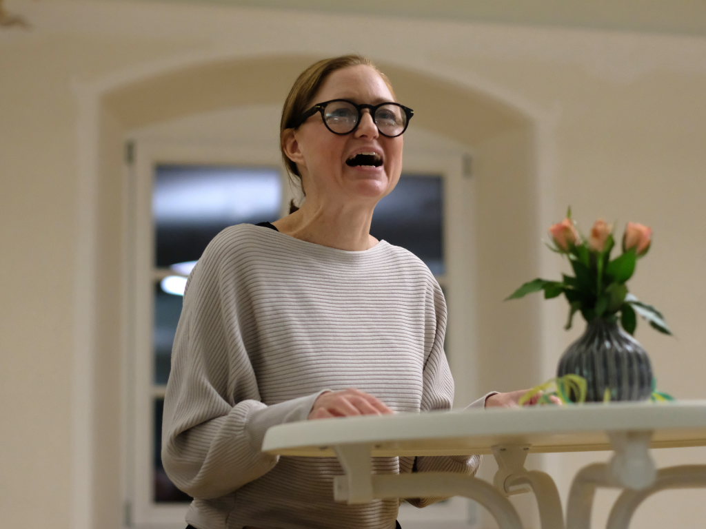 Sie stellte ihre Werke in einer kurzen Ansprache selbst vor. „Die Ausstellung trägt den Titel „Stories“, weil ich genau das mit meiner Kunst anregen möchte – das Sehen, das Interpretieren und das Erschaffen von Geschichten.“ „Während sie die Ausstellung anschauen, lade ich Sie ein, die Bilder auf sich wirken zu lassen. Es gibt kein Richtig oder Falsch – nur die Geschichten, die Sie sehen, die Gefühle, die entstehen und die Verbindungen, die Sie spüren.“