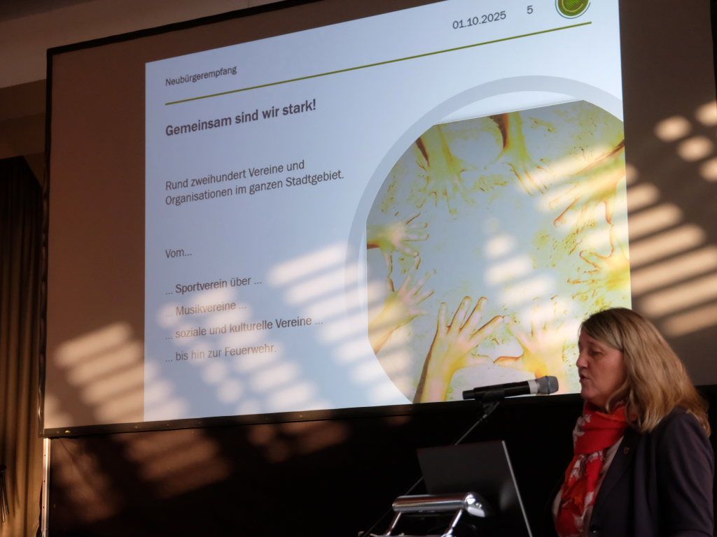 Bei Häppchen und Getränken hatten die Neubürger danach Gelegenheit, mit den rund 30 Vertretern von Vereinen und Institutionen, den Gemeinderäten und Ortsvorstehern ins Gespräch zu kommen und das Willkommensgeschenk der Stadt am Informationstisch der Vereine und Institutionen in Empfang zu nehmen.