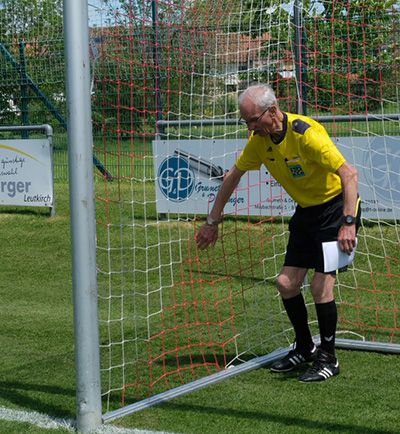 Und wie es sich für einen sorgfältigen Schiedsrichter gehört, hatte er zuvor die Netze und den Alurahmen der Tore inspiziert. Und dabei auch gleich einen kleinen Mangel an einem der Torpfosten festgestellt.