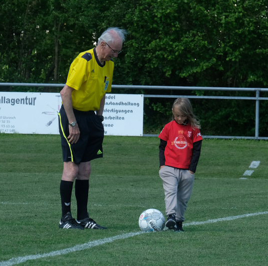 Xare Miller ist eine Institution im oberschwäbischen Fußball. Als die Spieler zum Einlauf bereit standen, bekam er nicht nur von seinem SV Arnach und von Karl Vollmer einen Geschenkkorb überreicht, sondern auch vom Kapitän des SV Immenried. Nicht fehlen durften natürlich seine Musikkameraden und -kameradinnen des MV Arnach, die zum Auftakt der kleinen Feier ein schmissiges Musikstück beitrugen. Zum Einlauf selbst, bei dem ein Enkel des Jubilars den Spielball aufs Feld trug, wurde es richtig feierlich, als vom Musikverein sogar die deutsche Nationalhymne intoniert wurde.