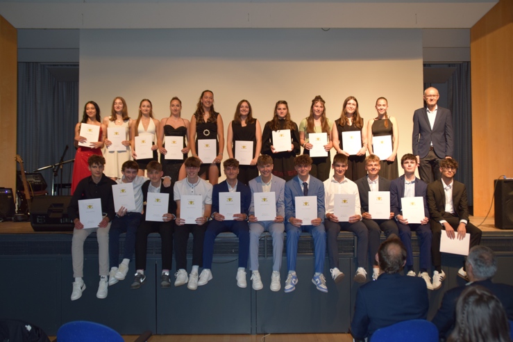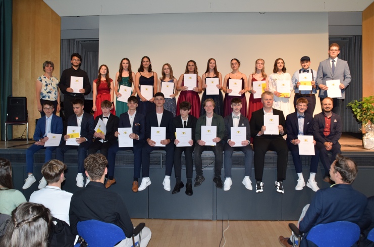 Besondere Ehrungen erfuhren die Notenbesten des Jahrgangs. So erhielt Susanna McCann den Preis im Fach Deutsch, Elias Veser im Fach Englisch, Clemens Birk im Fach Mathematik sowie Nora Taganovic im Fach Französisch. Die Auszeichnung in NWA ging an Clemens Birk, im Fach Technik konnten sich Milean Jakobartl, Lukas Hengherr und Clemens Birk besonders hervortun. Den besten Notenschnitt, verbunden mit einer ganz besonderen Ehrung der Stadt Bad Wurzach, erzielte Clemens Birk.