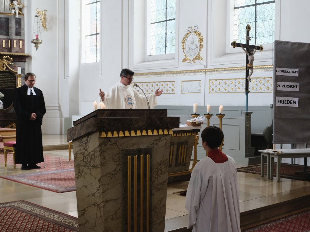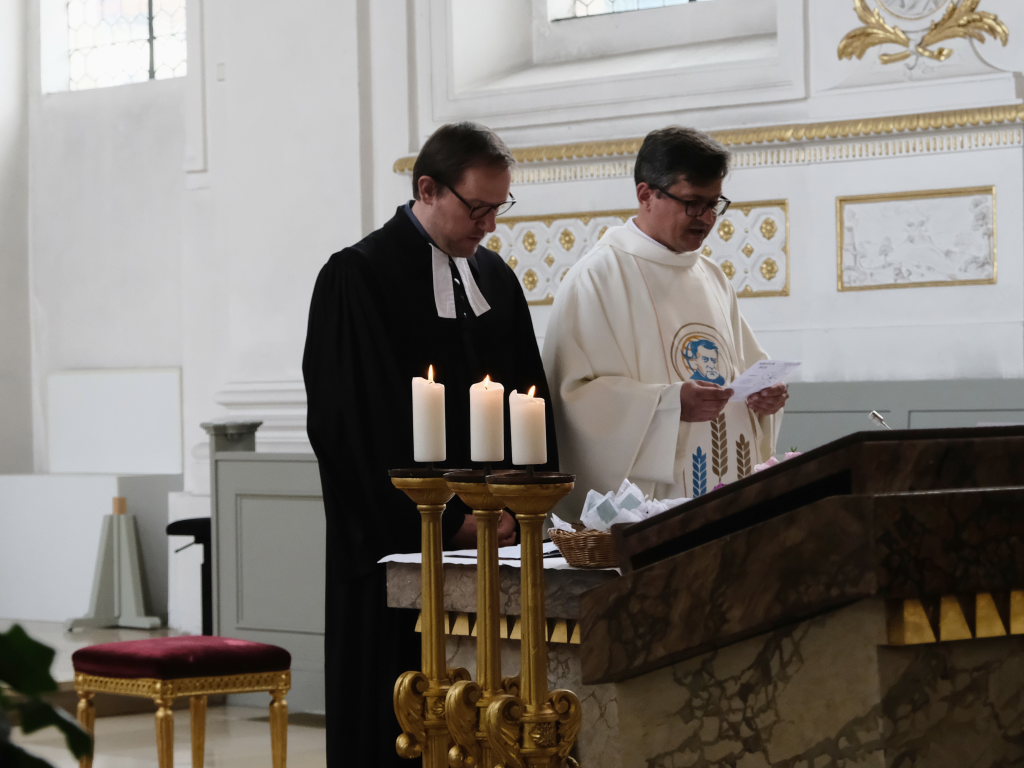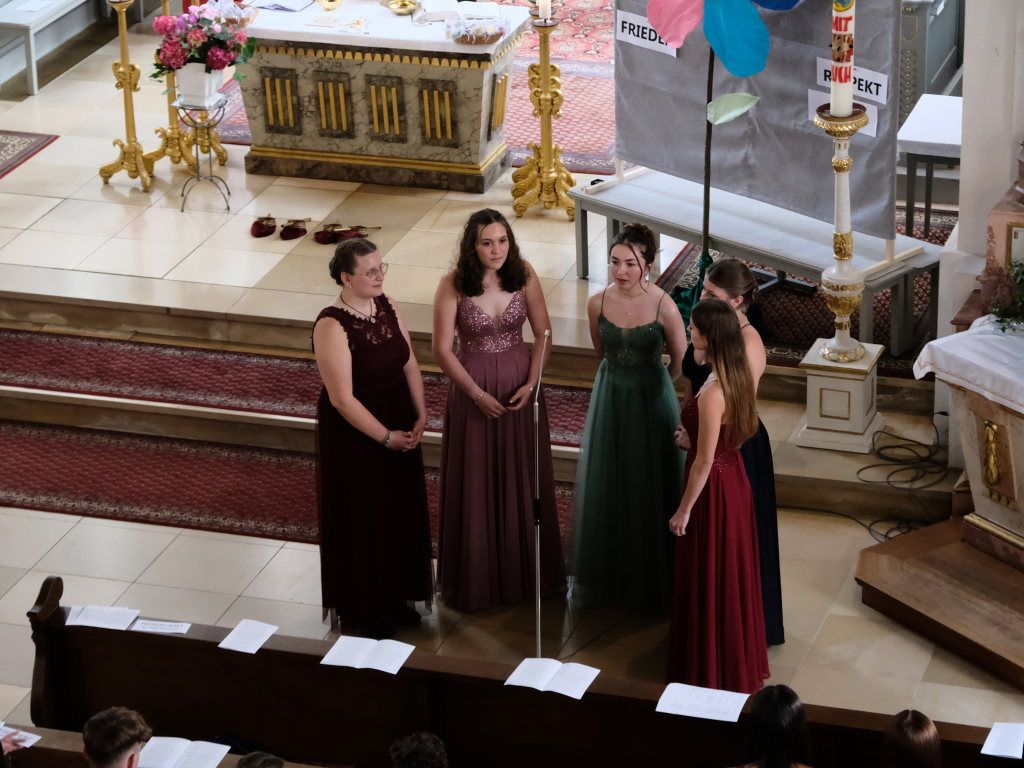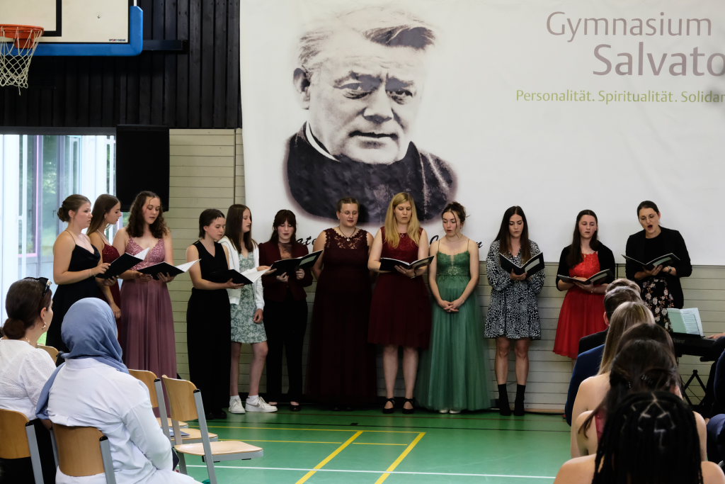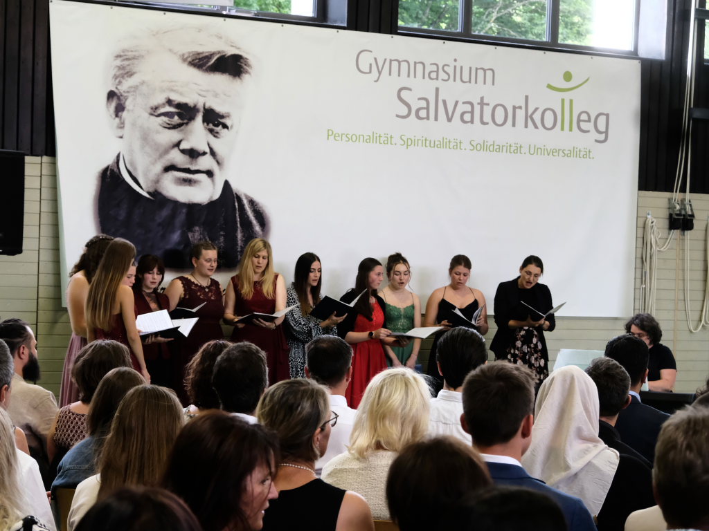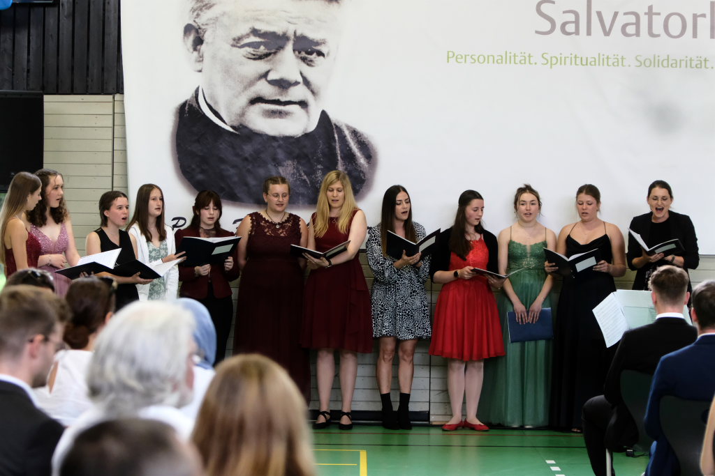 Bad Wurzach – Wie beim Salvatorkolleg üblich, begann die Abiturfeier mit einem von Pater Mariusz und Pfarrer Michael Kuczera zelebrierten und von einem Vokalensemble und einer Lehrerband musikalisch mitgestalteten ökumenischen Gottesdienst in der Stadtpfarrkirche St. Verena. Er stand in diesem Jahr unter dem Motto „Frieden, Liebe, Freundschaft, Zuversicht, Respekt“. Es war ein ganz besonderer Abiturjahrgang, weil das Salvatorkolleg Bad Wurzach in diesem Jahr sein 100-jähriges Jubiläum feiert.