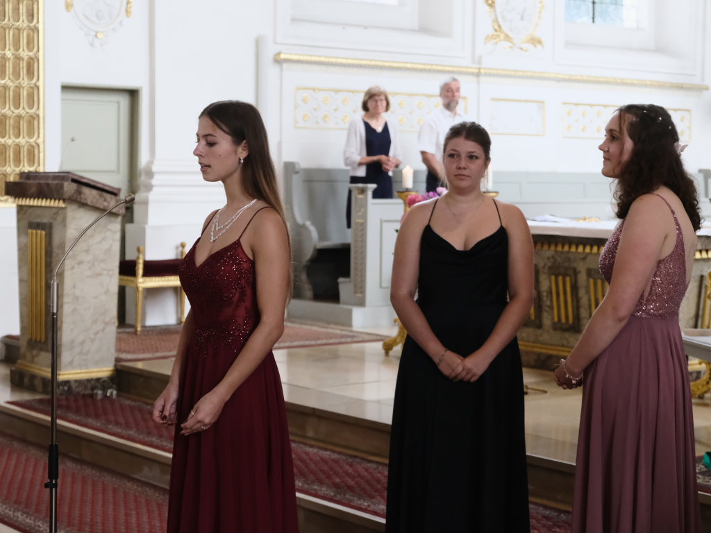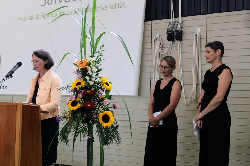 Das Team der Elternvertreter Stephanie Blank, Dominike Bühler und Ulrike Patzner teilte sich die Aufgabe, die Meinung der Eltern über die Arbeit der Schule kundzutun. „Sie haben unsere Kinder in ihrer Entwicklung vom Kind über die Pubertät bis ins junge Erwachsenenalter nicht nur begleitet, sondern oftmals auch geprägt, bestärkt und ermutigt. Nach dem Stadium von Rechtsschreibkorrektur und Mitfiebern bei den ersten Klassenarbeiten sind es jetzt die Eltern, die beim Einrichten ihres Handys die Unterstützung der Kinder benötigen. Als Eltern habe man mit viel Herzblut und Liebe die Kinder in dieser Zeit begleitet, gefördert, motiviert und ihnen auch manches abverlangt. „Dennoch scheinen wir einiges richtig gemacht zu haben.“ In diese Zeit seien viele prägende Erlebnisse gefallen wie Schullandheim, Essensverkäufe, Homeschooling oder die Klassenfahrt in Klasse 11. „Die Zukunft steht Euch jetzt offen, egal ob jetzt ein Studium oder eine Ausbildung begonnen wird oder ob ihr ganz andere Pläne habt.“ Auch wenn nicht alles auf Anhieb klappe, sollten sie daran denken, dass auch in diesen acht Jahren nicht alles glatt gelaufen sei und sie dennoch ihr Ziel erreicht hätten. „Wir gratulieren Euch zu dieser Leistung und wünschen Euch für Eure Zukunft alles erdenklich Gute.“