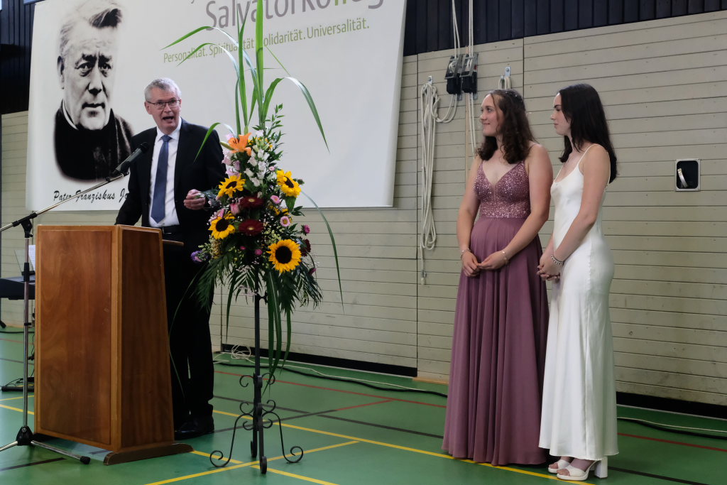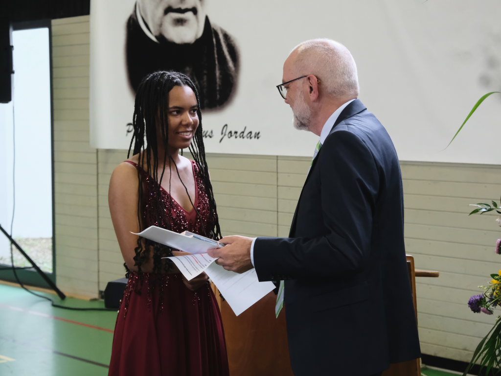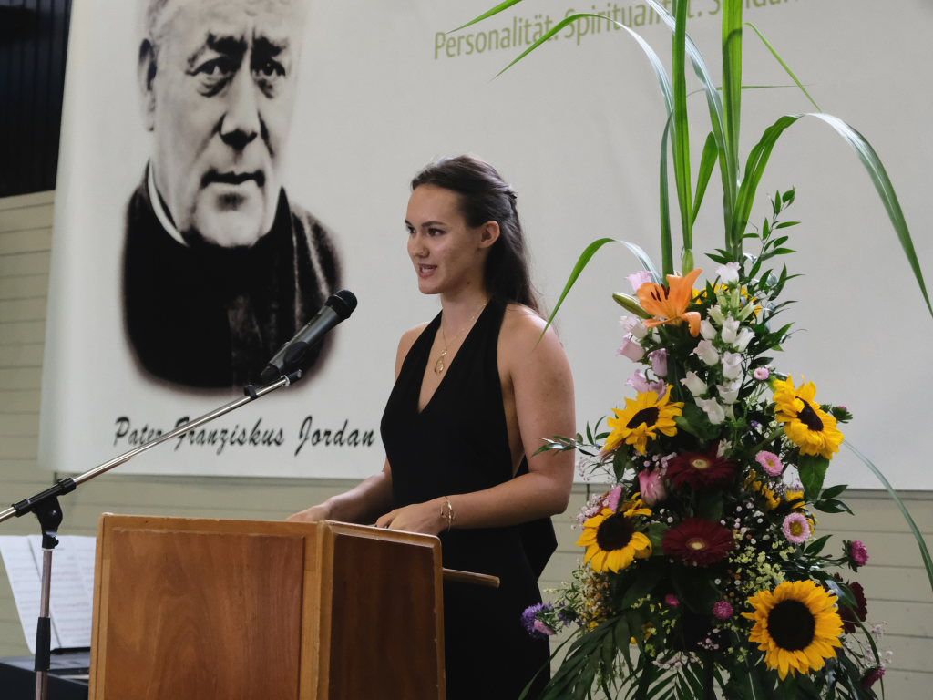 Den Pater-Jordan-Preis für großes Engagement um das Schulprofil, überreicht an alter Wirkungsstätte von Provinzial Pater Friedrich Emde, erhielten Emma Gräber und Pia Kegel. Er sagte in seinem Grußwort, dass dieses Jahr für den Orden ein ganz besonderes sei. Für Pater Jordan habe Vertrauen eine große Rolle gespielt, daher habe er auch sehr viel Gottvertrauen gehabt.