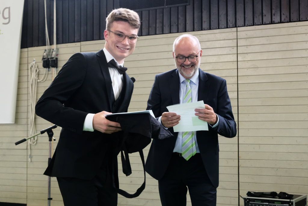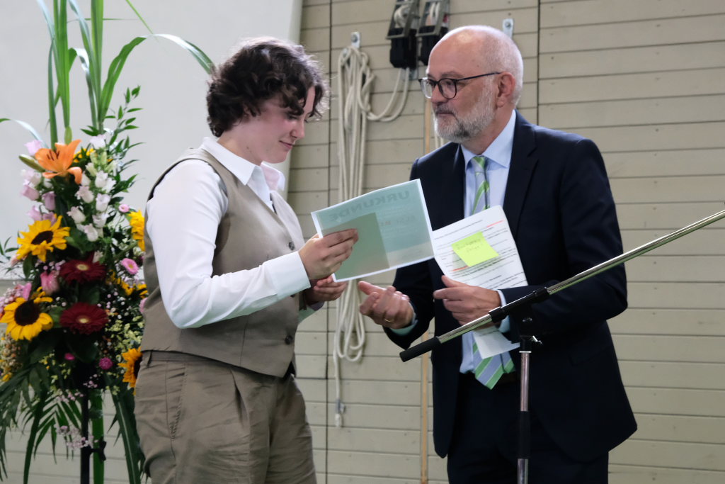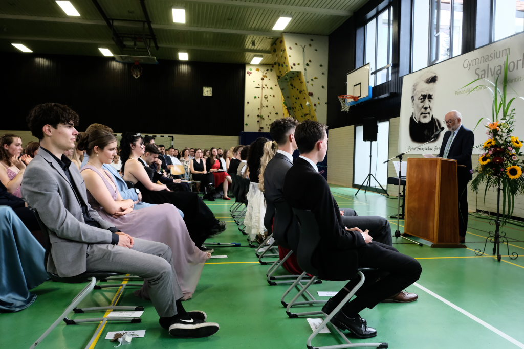 „Mein Wunsch für Euch“, sprach Amann am Ende die Abiturienten noch einmal direkt an: „Haltet an Euren Werten, an Euren Hoffnungen fest und schätzt sie auch später! Nochmals Schiller 2024: ,Sagen Sie den jungen Leuten, dass sie Achtung tragen sollen für die Träume ihrer Jugend, wenn sie erwachsen sein werden!´“