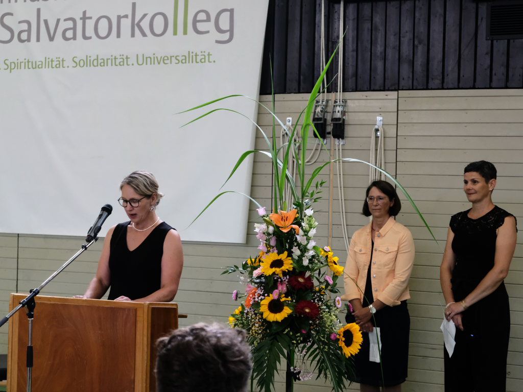Im Rückblick auf ihre Schulzeit waren neben vielen Reisen auch einige ernste Situationen in Erinnerung geblieben, etwa die „Lecker Bierchen“ in der Mittagspause der 10c, die seitens der Lehrerschaft nicht sehr witzig empfunden wurden oder Liebesbriefdramen auf Besinnungstagen oder die morgendlichen Besuche des damaligen Schulleiters Pater Friedrich bei der lärmerfüllten 5a. Martha Lemanczyk ging in ihrem Rückblick auf die diversen Reisen ein, die oft sehr bildend waren, auch wenn wegen Corona zum Beispiel die Schüleraustausche mit Frankreich und England bis nach der Pandemie verschoben werden mussten. Aber die Pandemie habe auch etwas Gutes gehabt: Man habe gelernt, die Welt zu hinterfragen, sich eine eigene Meinung zu bilden und zu dieser zu stehen. Während der achtjährigen Schulzeit am Salvatorkolleg seien die Abiturienten gemeinsam groß geworden, hätten ihre Grenzen getestet, nützliche und weniger nützliche Dinge gelernt, Freundschaften fürs Leben geschlossen. „Wir haben die Lehrer genervt und sie manchmal uns. Wir haben die Pausen auf dem Klo oder im Klassenzimmer verbracht und uns in den Freistunden in Wurzach herumgetrieben, aber letztendlich waren es wundervolle acht Jahre, die uns zu den Menschen gemacht haben, die wir heute sind.“