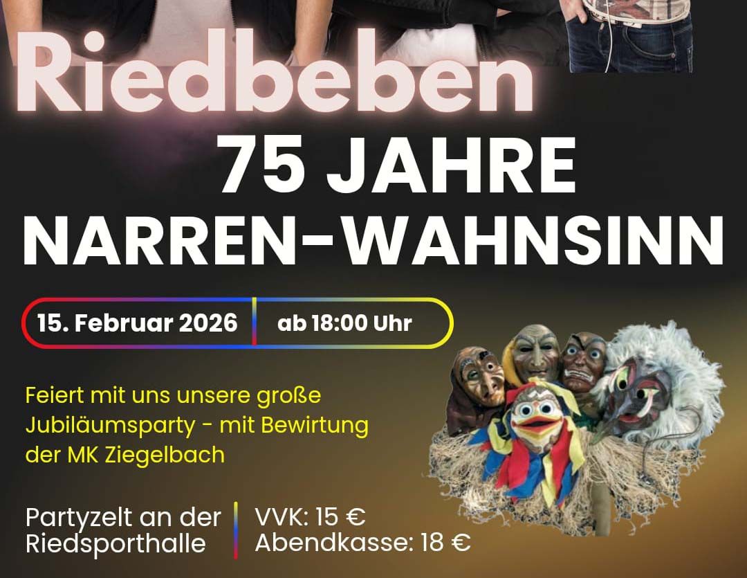 Bad Wurzach – Die Narrenzunft D‘ Riedmeckeler Bad Wurzach feiert 75-jähriges Bestehen. Am Fasnetsonntag, 15. Februar,…