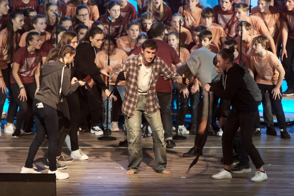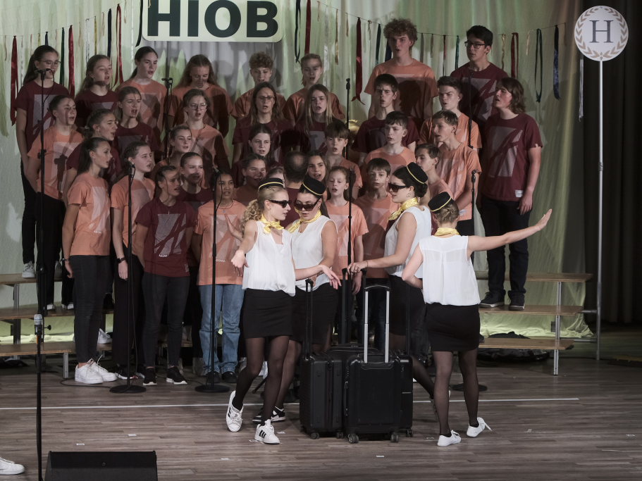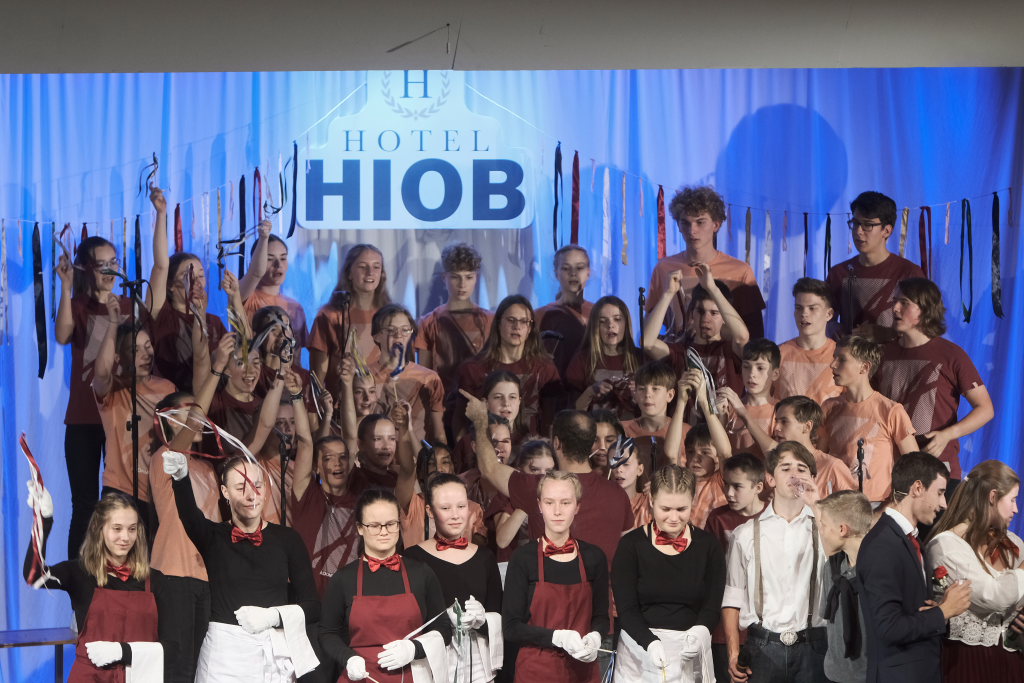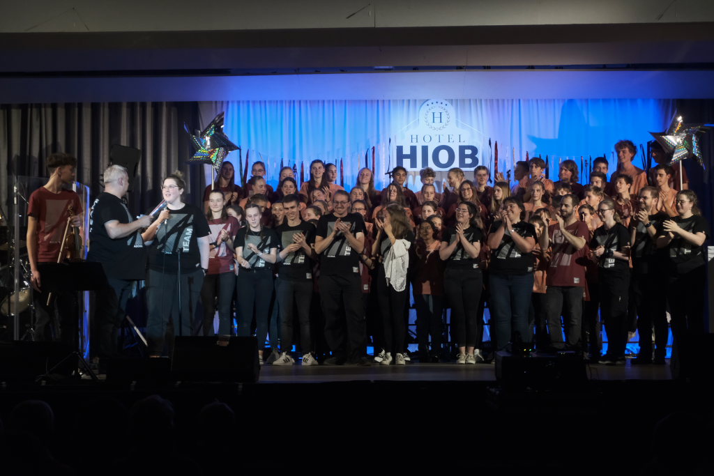 Jeweils 70 talentierte Teenager als SängerInnen und TänzerInnen sowie eine junge, peppige Live-Band stehen bei den Auftritten der einzelnen Camps auf der Bühne: In diesem Jahr führen beziehungsweise führten insgesamt 39 Projektchöre an 156 Orten deutschlandweit das Musical Hiob auf, eine moderne Umsetzung eines der brisantesten biblischen Themen überhaupt. Mit mitreißenden Songs, berührenden Theaterszenen und innovativen Show-Elementen überzeugten und begeisterten die jungen Darsteller das Publikum, darunter auch Bürgermeisterin Alexandra Scherer auch im Kursaal.