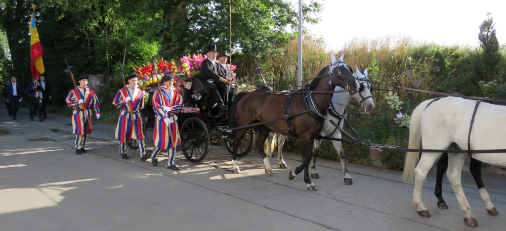 11. Juli 2025, kurz nach 8.00 Uhr: Der vierspännig gezogene Heiligblutwagen trifft in Truschwende ein.