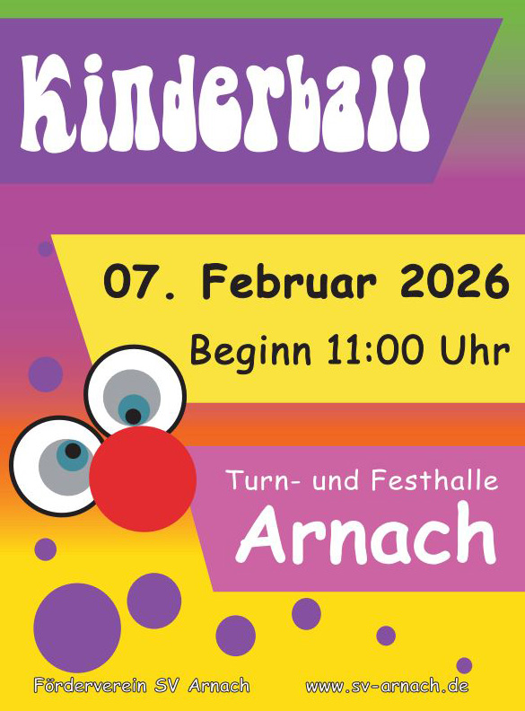 Arnach – Am Samstag, 7. Februar, findet ab 11.11 Uhr in der Turn- und Festhalle in Arnach der traditionelle Kinder- und Jugendball statt. Der Jugendausschuss des SV Arnach hat dafür ein fetziges Programm auf die Beine gestellt. Viele Kinder und Jugendliche werden an diesem Tag auf der Showbühne stehen. Die Eltern, Omas und Opas, Onkel und Tanten, Geschwister, Freunde und Bekannte sind natürlich auch herzlich eingeladen. Der Eintritt ist frei.