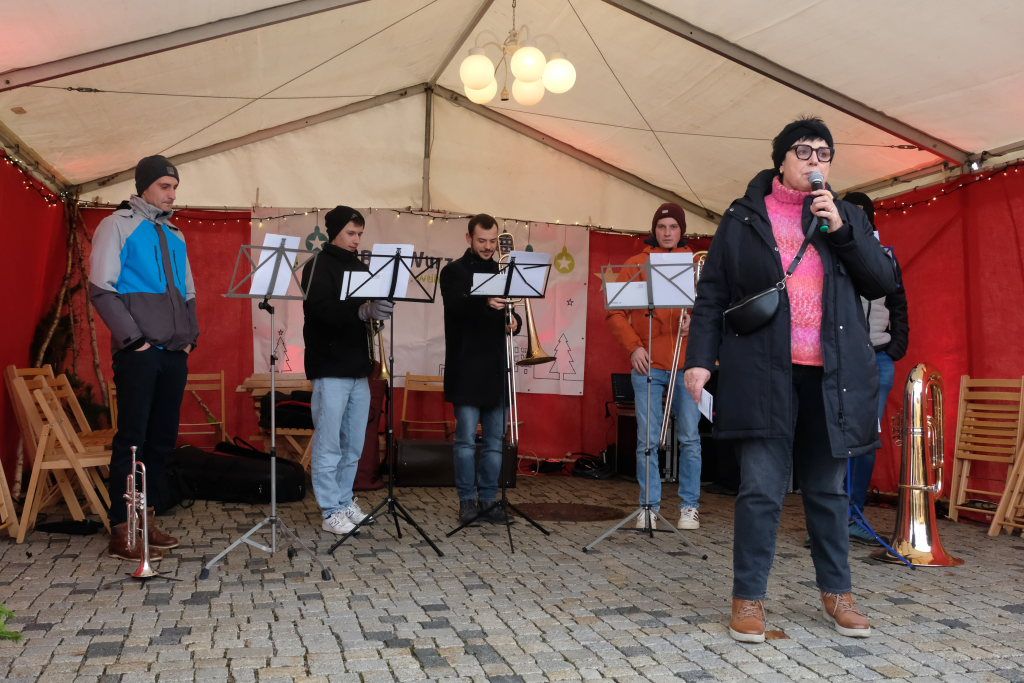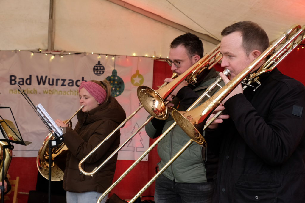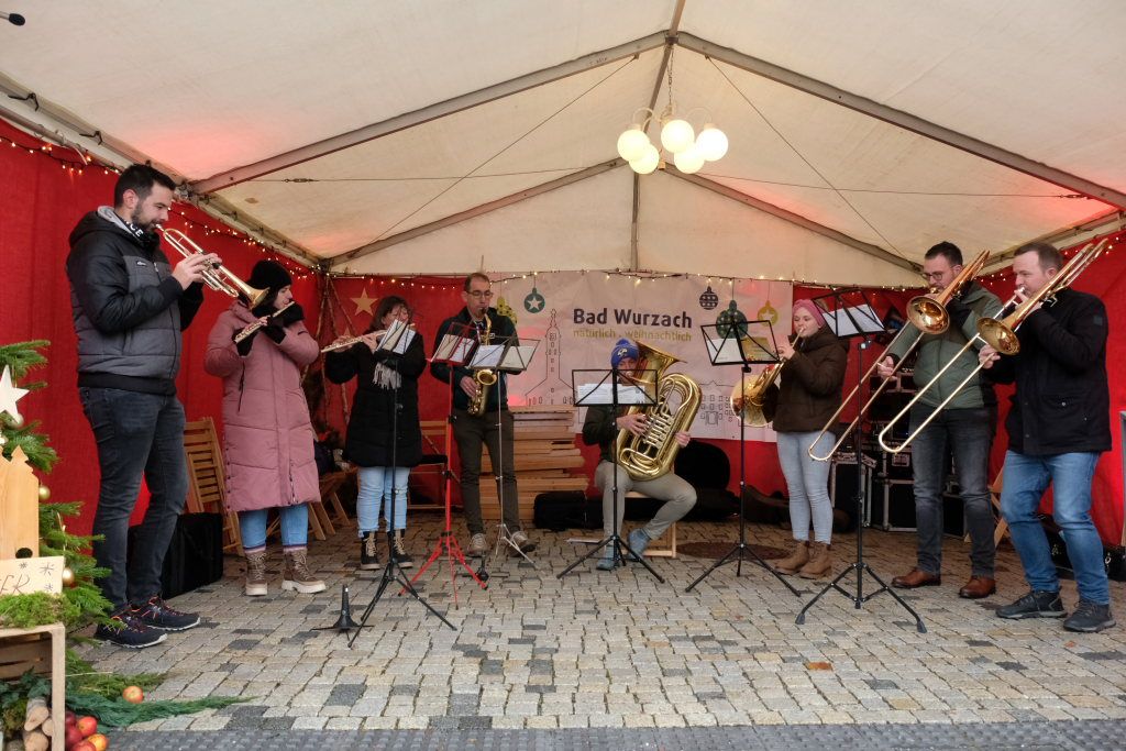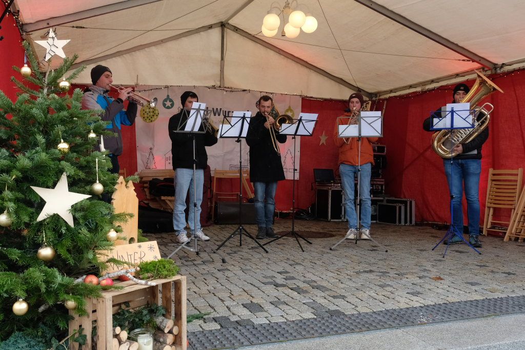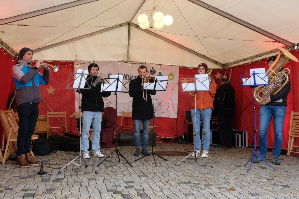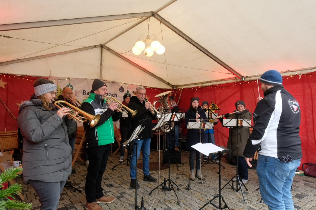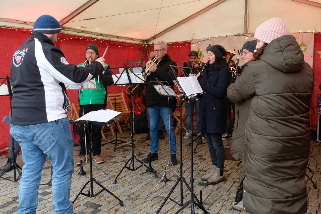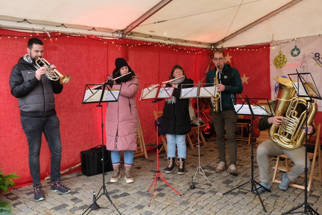 Den Sonntag musikalisch eröffnete auf der Klosterplatzbühne ein Bläserquintett des Musikvereins Arnach mit bekannten Advents- und Weihnachtsmelodien, dem dann eine kleine Abordnung des Musikvereins Eintürnen unter dem Dirigat von Roland Schmid folgte. Danach griff beim Musikverein Haidgau Dirigent Alexander Werner dann selbst zur Posaune und verbreitete gemeinsam mit einer erlesenen Auswahl seiner Haidgauer Musiker Weihnachtsstimmung, ehe die Riedhangalphornbläser aus Albers mit Wolfgang Grösser für das musikalische Finale sorgten.
