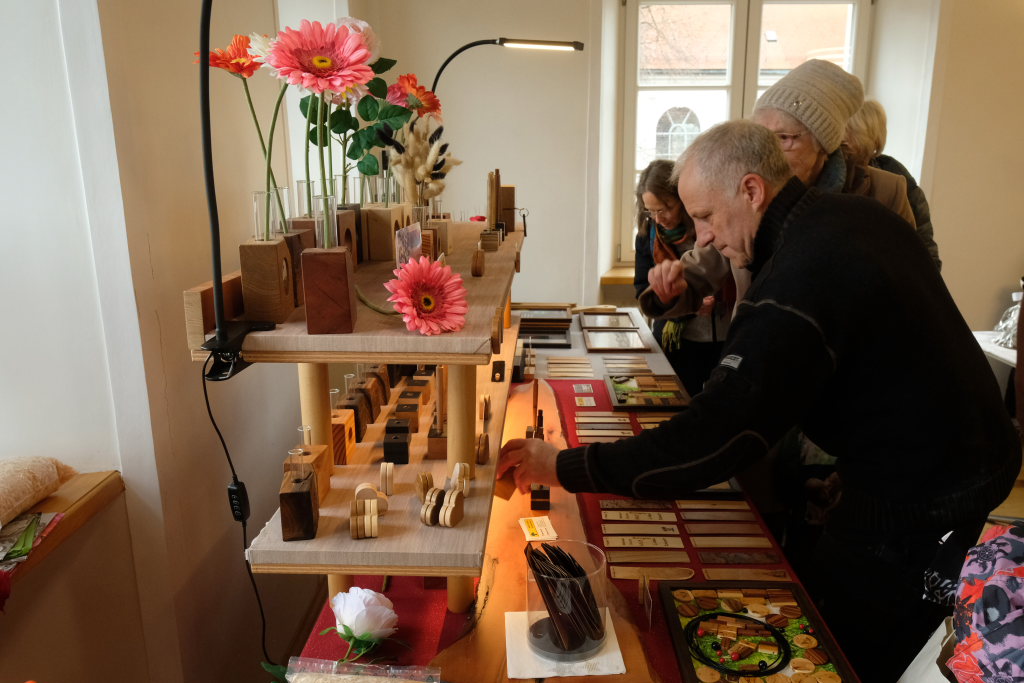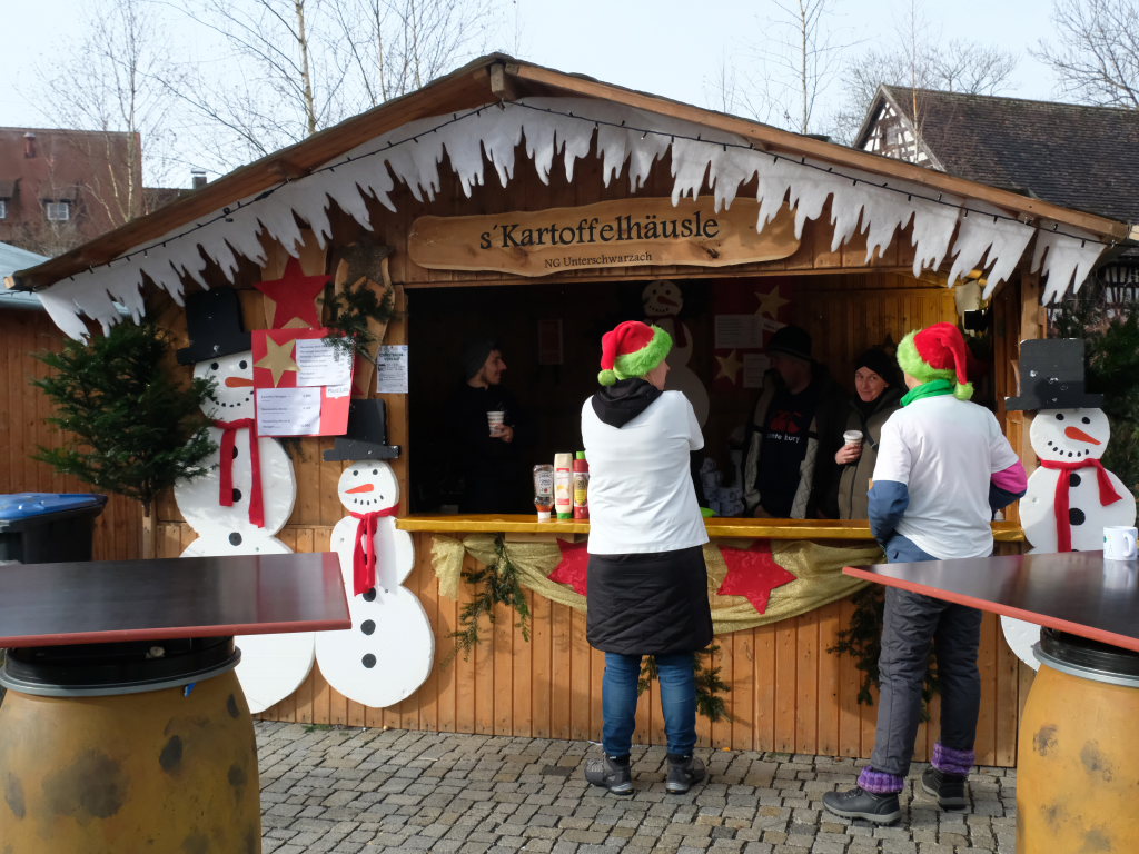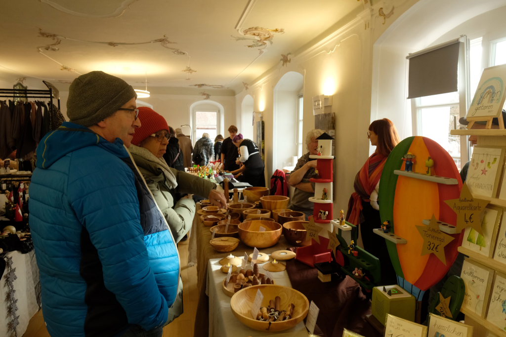 Dafür bot das Liederkranz-Café im Sitzungssaal wunderbar die Gelegenheit, aber weil sich die Außentemperaturen in einem gemäßigten Rahmen bewegten, auch die vielen Stehtische bei den einzelnen Verkaufshütten, wo es sich bei Glühwein und Punsch wunderbar „ratschen“ ließ.