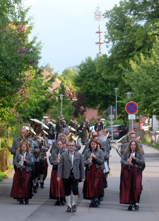 Die Musikkapelle Eintürnen am Freitagabend beim Marsch zum Festgelände. Sie wie auch der Ziegelbacher Musikverein konnten wegen einer Musikantenhochzeit am Sternmarsch am Samstag nicht teilnehmen und erwiesen den Arnachern deshalb am Vortag die Ehre. Foto: Uli Gresser