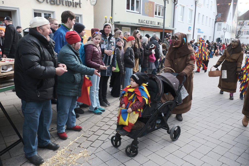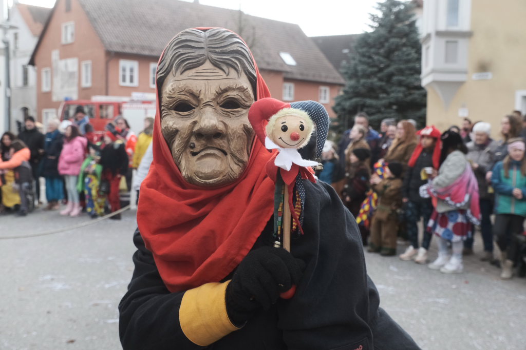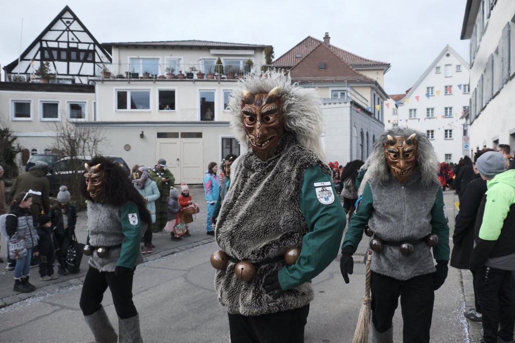 Für die Kinder aber erwiesen sich die auf den ersten Blick furchteinflößenden Masken und Larven oft als freundliche, zu Schabernack aufgelegte und freigebige Narrenfiguren. Wer von Alt und Jung brav die verschiedenen Narrensprüche wie „Bawald-Bohle“, „Hoorig, hoorig, isch die Katz “ oder „No it huddla – Ofanudla“ beantwortete, bekam als Belohnung das eine oder andere – auch flüssige – Guatsle.