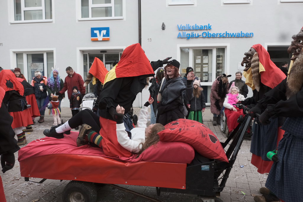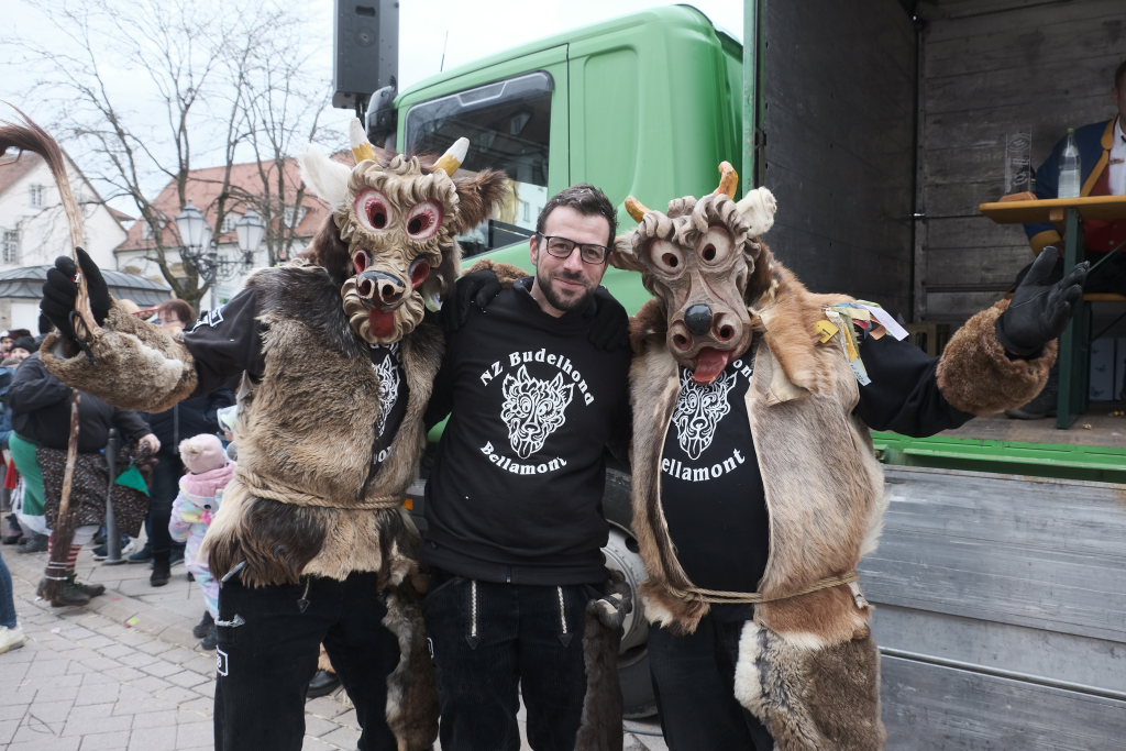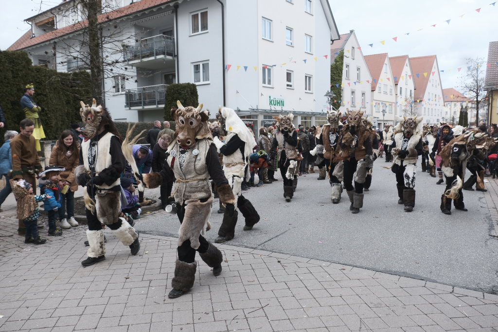Es waren natürlich fast alle Zünfte aus der Großgemeinde, etwa die Arnacher Schaoafböck, die Hauerzer Baadgoischd´r, die Narrengilde Unterschwarzach, die Seibranzer Langjupp mit großen Abordnungen vertreten. Dazu gesellten sich noch aus der Großgemeinde die Freunde des Ungeziefers. Aber auch aus dem benachbarten Bayrischen, zum Beispiel aus Kimratshofen, Altusried, Memmingen oder Kammlach, waren große Abordnungen dabei.