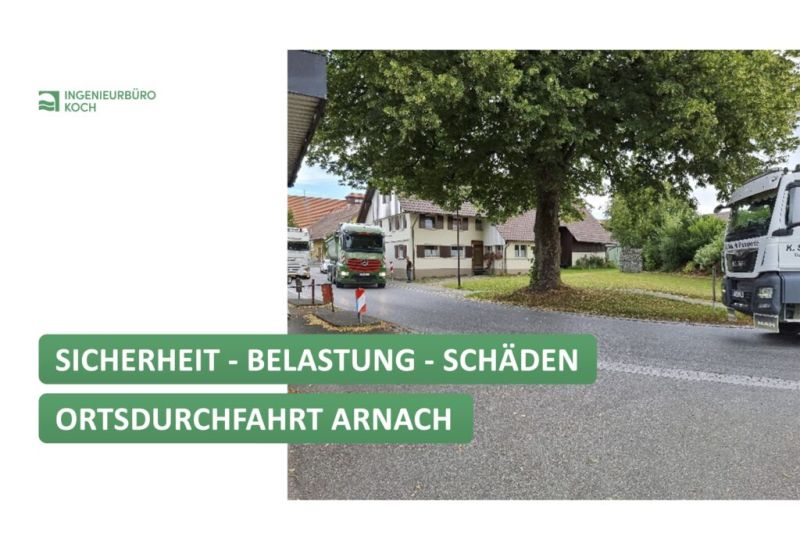 Michael Schuchert, Geschäftsführer des Ingenieurbüros Koch in Kempten, hat das Gutachten privat erstellt und der Ortschaft Arnach kostenlos zur weiteren Verwendung im politischen Prozess überlassen. Der 64-jährige Verkehrsfachmann, wohnhaft am Kapellenberg und somit von der Arnacher Verkehrsproblematik auch persönlich betroffen, sieht bei der Ortsdurchfahrt erhebliche Defizite und somit Gefahren. In seiner Analyse führt er allein für die Jahre 2016, 2017 und 2019 vier Unfälle auf, davon drei Kollisionen Pkw / Rad. Hauptkritikpunkt von Schuchert ist die unzureichende Fahrbahnbreite mit 5,50 bis 6,00 Metern. Die Lastwagen kämen deshalb kaum aneinander vorbei und müssten regelmäßig auf die Gehwege ausweichen, wo Fußgänger gefährdet seien. Die Radfahrer wiederum müssten sich die Fahrbahn mit dem Kraftverkehr teilen. Ein Problem sei auch das schnelle Heranfahren an den Ort von vier Seiten her.