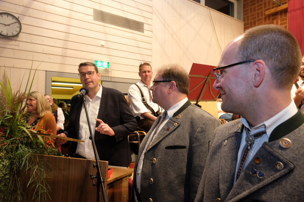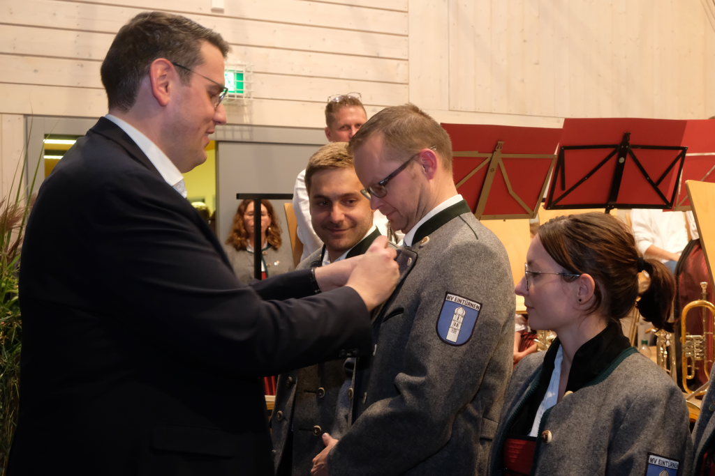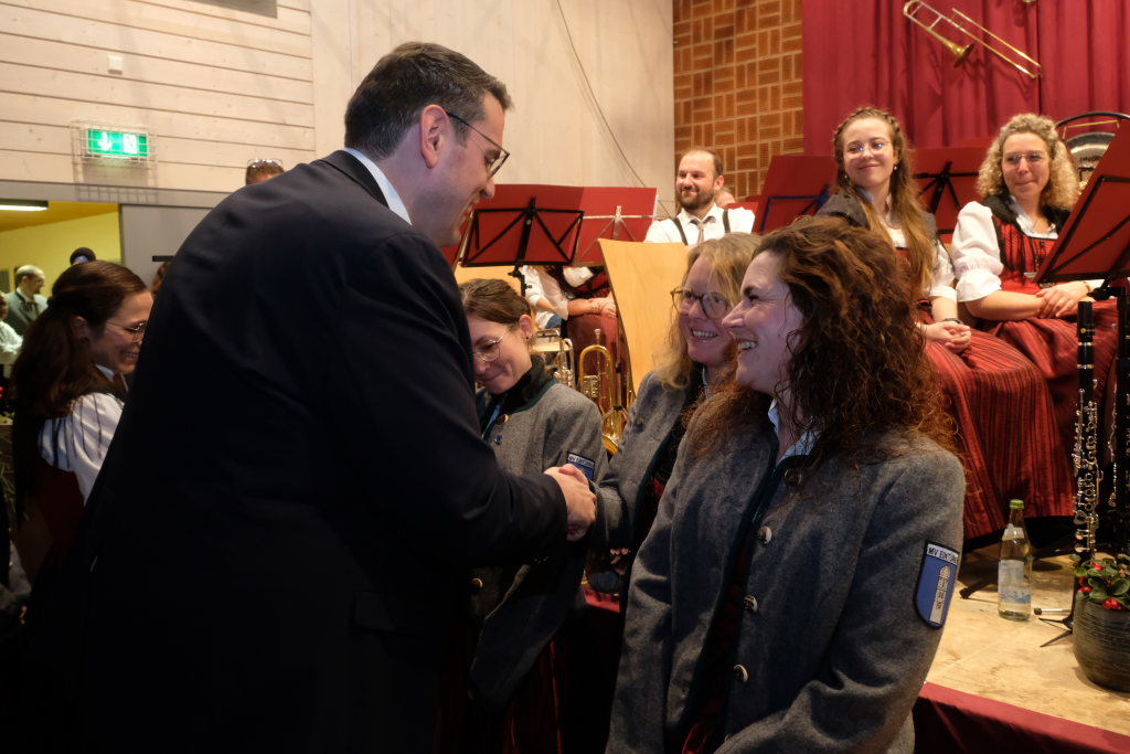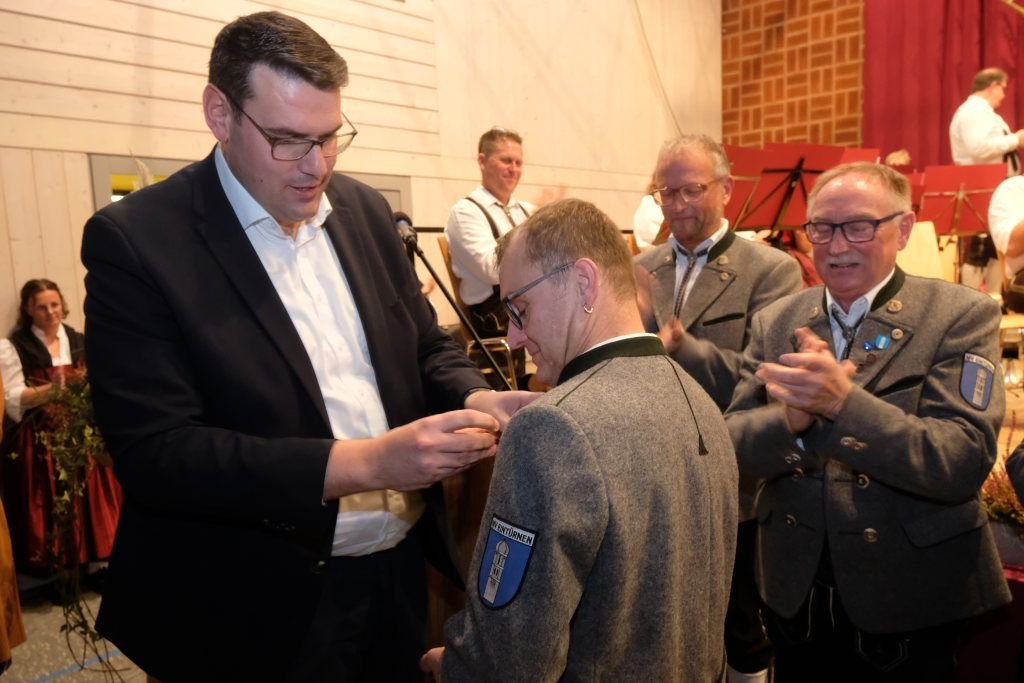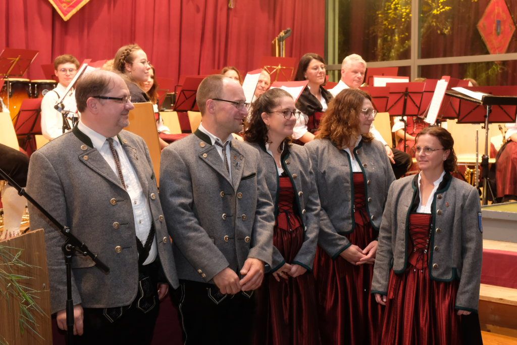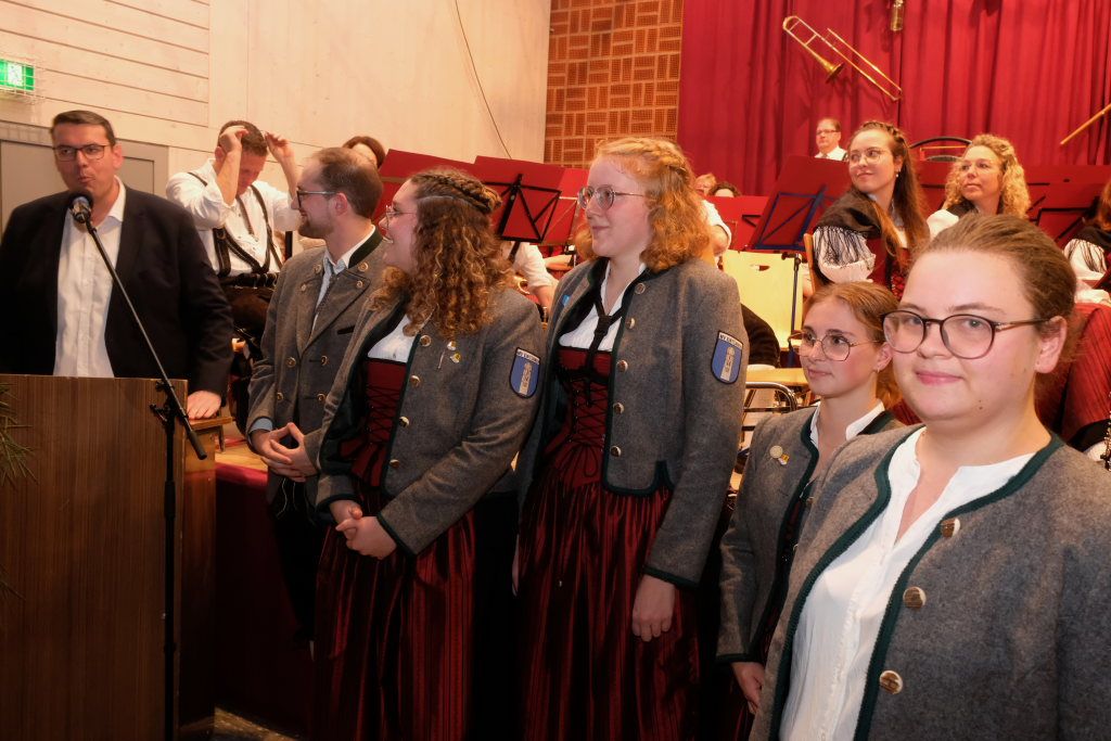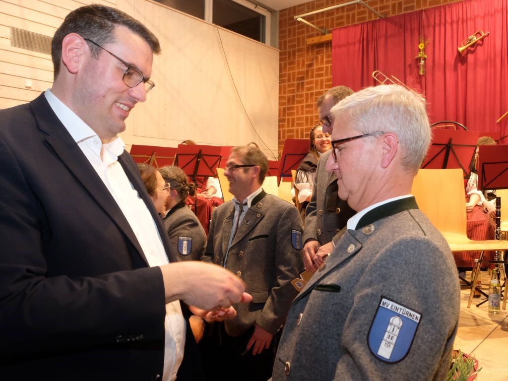 Für 10 Jahre aktives Musizieren wurden mit der bronzenen Ehrennadel des Blasmusikverbands Baden-Württemberg ausgezeichnet: Markus Bendel, der als Tubist eine Dose Leberwurst aus der Klostermetzgerei Reute erhielt. Zusätzlich ist er seit 2023 Vereinskassier.