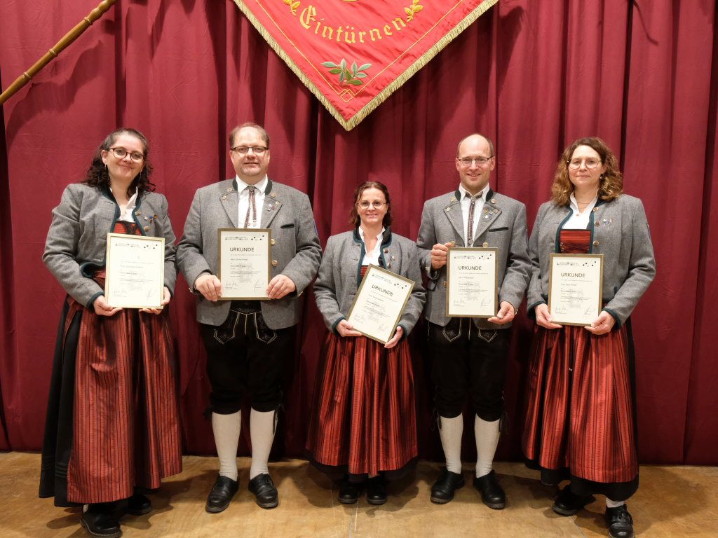 Für 40 Jahre aktives Musizieren wurden mit der Ehrennadel in Gold mit Diamant und Ehrenbrief ausgezeichnet:
