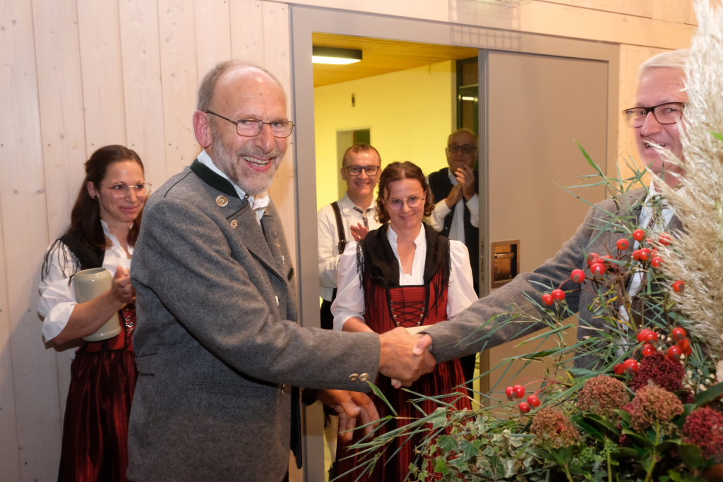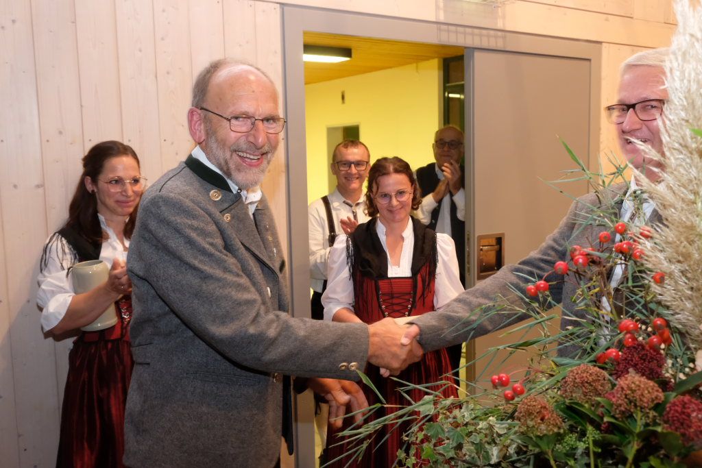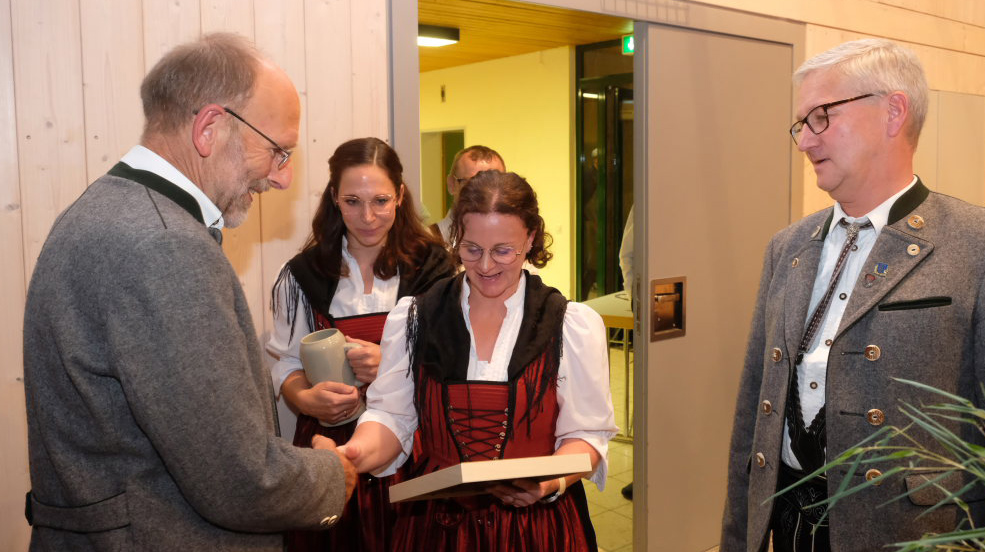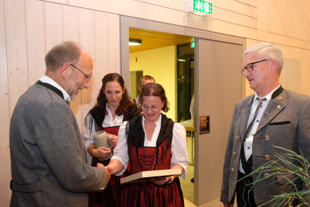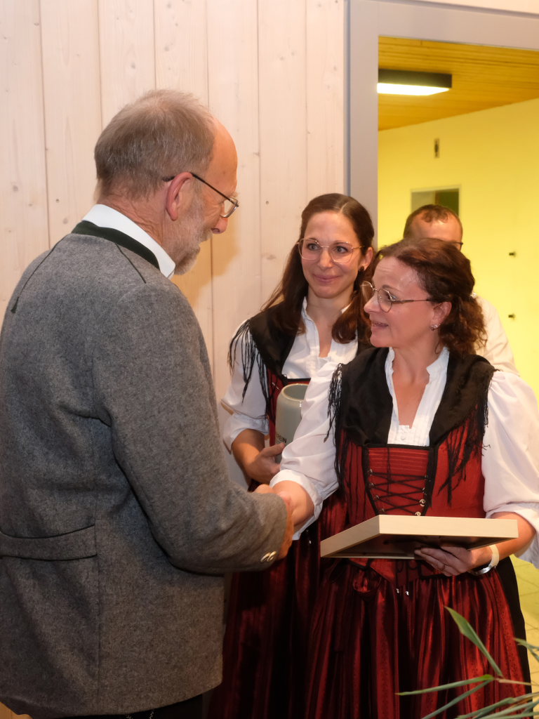 Ehrenvorstand und aktuelle Vorstandschaft: Arthur Bott erhält aus der Hand von Tanja Stephan die gerahmte Urkunde zu seiner Ernennung zum Ehrenvorstand. Weiter gab es einen Krug, überreicht von Ines Haag, sowie Glückwünsche, ausgesprochen von Thomas Stärk.