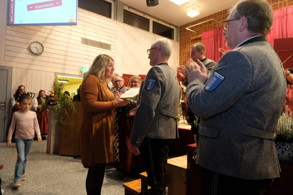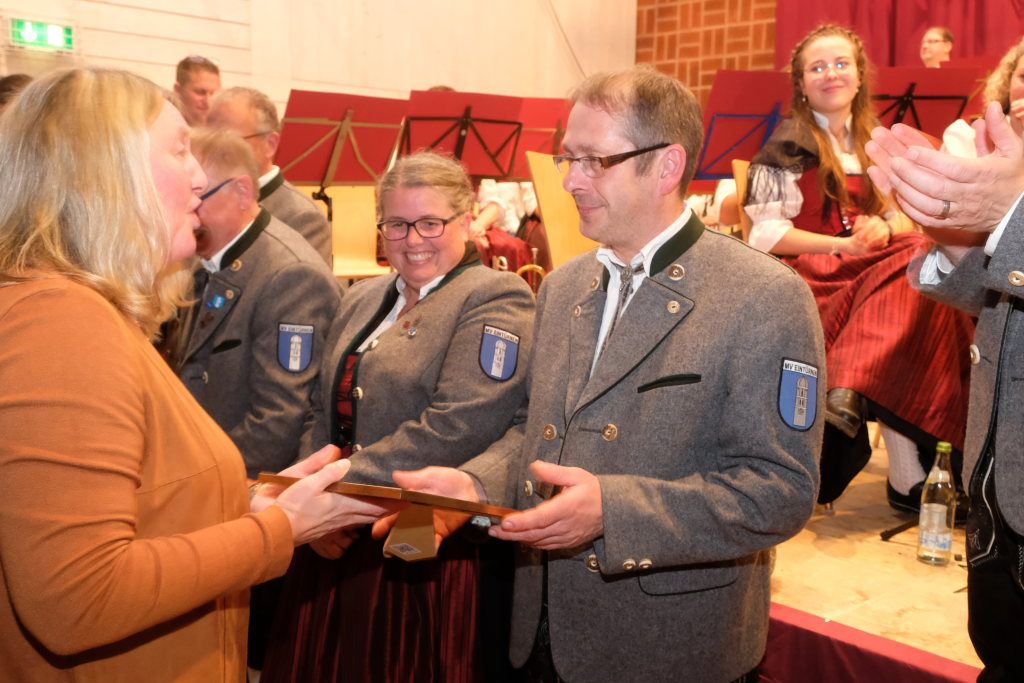 Eine ganz besondere Ehrung hatte sich das Vorstandsteam für den Schluss der Ehrungen aufgehoben. Arthur Bott, der viele Jahre die Geschicke des Vereines geleitet hatte, bekam unter stehenden Ovationen seiner Mitmusiker und des Publikums vom Verein den Titel des Ehrenvorstands verliehen.